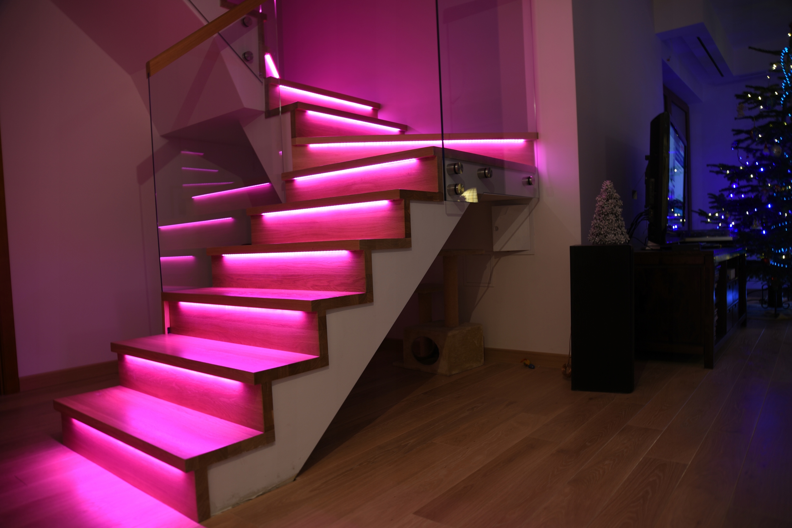 - Анимированные функция подсветки лестницы в цвете RGBW (развивающие ступени)