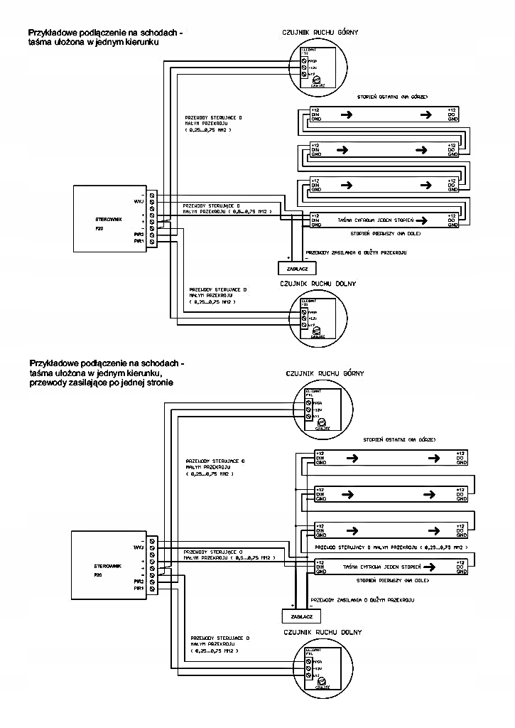 Благодаря контроллеру мы можем легко создавать современное и инновационное освещение для лестниц или коридоров. Сборка всего комплекта не вызывает особых проблем. Подключайте ленты последовательно, не забывая соблюдать правильное направление сигнала (стрелки на ленте).К контроллеру подключайте всего три провода (сигнал, плюс, земля), что существенно упрощает всю установку.