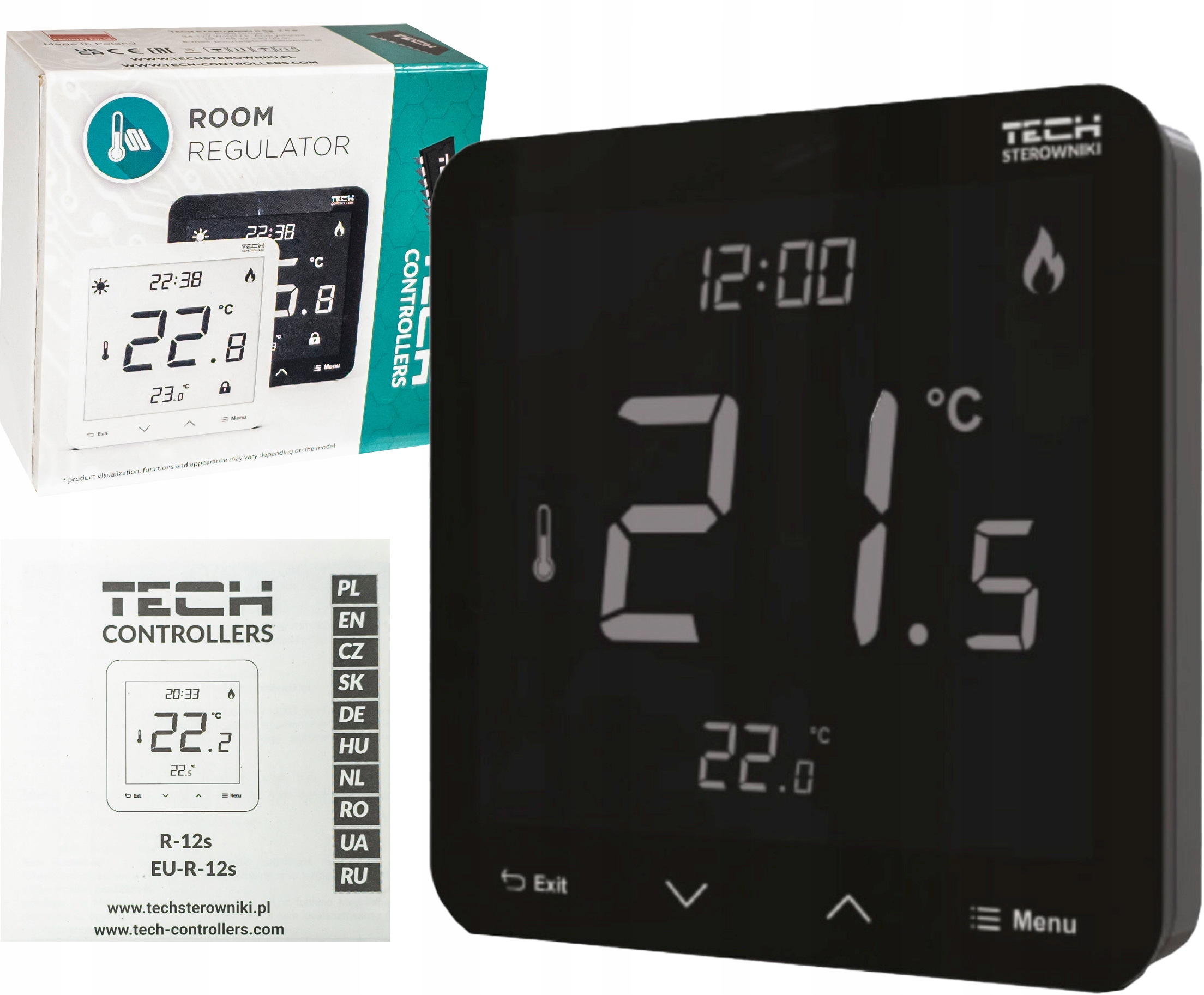 КОНТРОЛЕР ТЕМПЕРАТУРИ РЕГУЛЯТОР КІМНАТНИЙ ТЕРМОСТАТ ЧОРНИЙ R-12S TECH