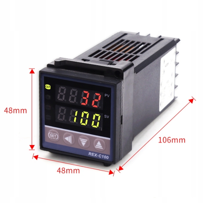 ✅ rkc rex-c100fk02-m*Драйвер имеет выход к встроенной реле (реле). ⭐ RKC REX-C100-контроллер температуры благодаря точности и очень большому диапазону температур означает, что его можно использовать в профессиональных устройствах, и благодаря низкой цене, которую он может использоваться любителями. ⭐ Контроллер позволяет поддерживать температуру на уровне заданного значения (SV), тестируя ее (PV) с помощью подключенных термопилов тип: K, J, R, S, B, E, T, N (JIS/IEC) , Plii (NBS) W5RE/ W26RE (ASTM), U, L (DIN), PT100 (JIS/ IEC), JPT100 (JIS). ⭐ Контроллер REX -C100, в зависимости от подключенной термопары, может регулировать температуру в диапазоне от -199 ° C до 1820 ° C. ⭐ Заводский регулятор установлен как: SLH (макс.) = 400 ° C и SL1 (датчик типа K) = 0000. ⭐ Эти параметры могут быть изменены в меню контроллера. ✅ Соединение REX C100 1, 2 -AC 230V источник питания переменного тока; 9 (-), 10 () -ThermoCouple (датчик температуры); 3, 4-й выпуск непосредственно к управляемому устройству или реле SSR (отдельный источник питания SSR требуется в зависимости от его DC-AC, AC-AC, DC-DC)