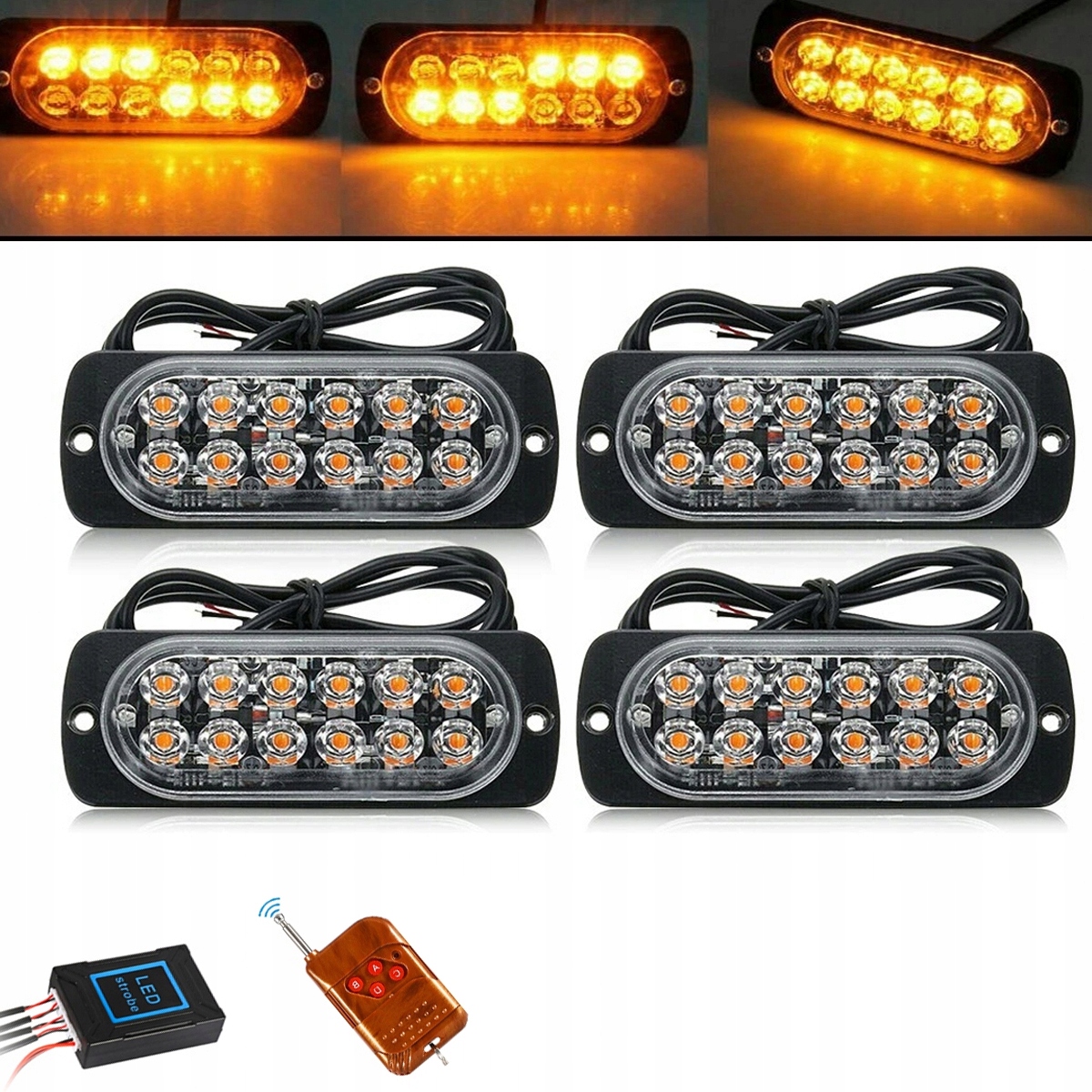 4шт. СИГНАЛЬНАЯ ЛАМПА СТРОБСКОП 12LED оранжевый 12В