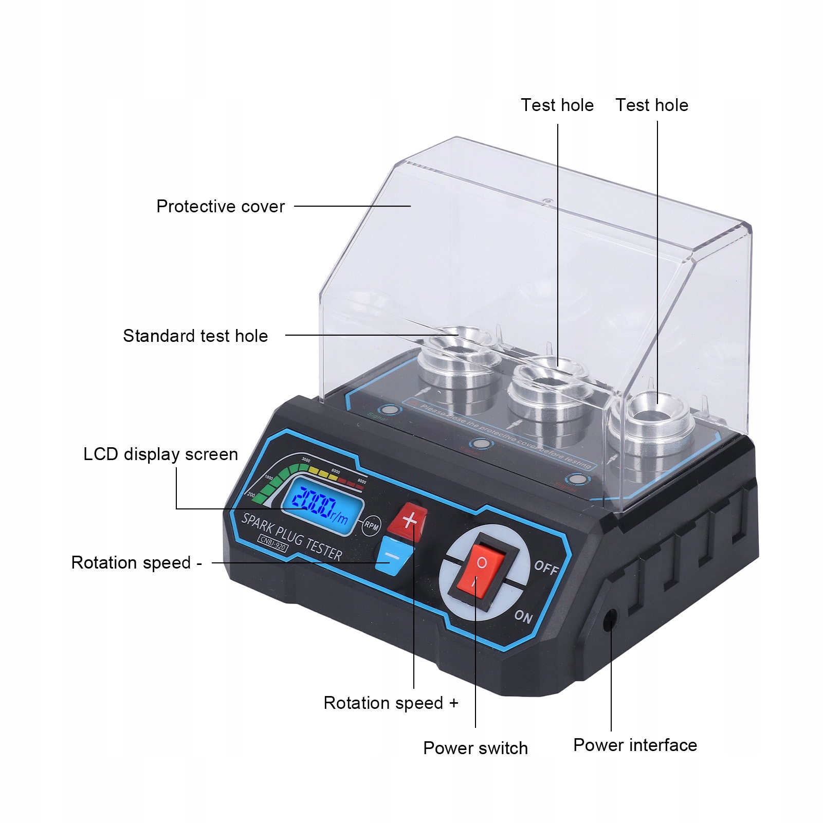 3. [Подключите и играйте] Просто поместите протестированную флеш -свечу в испытательное отверстие, накрыть защитной крышкой, а затем приведите источник питания, чтобы запустить тест. С цифровым экраном, отображающим рабочую скорость для точного управления.