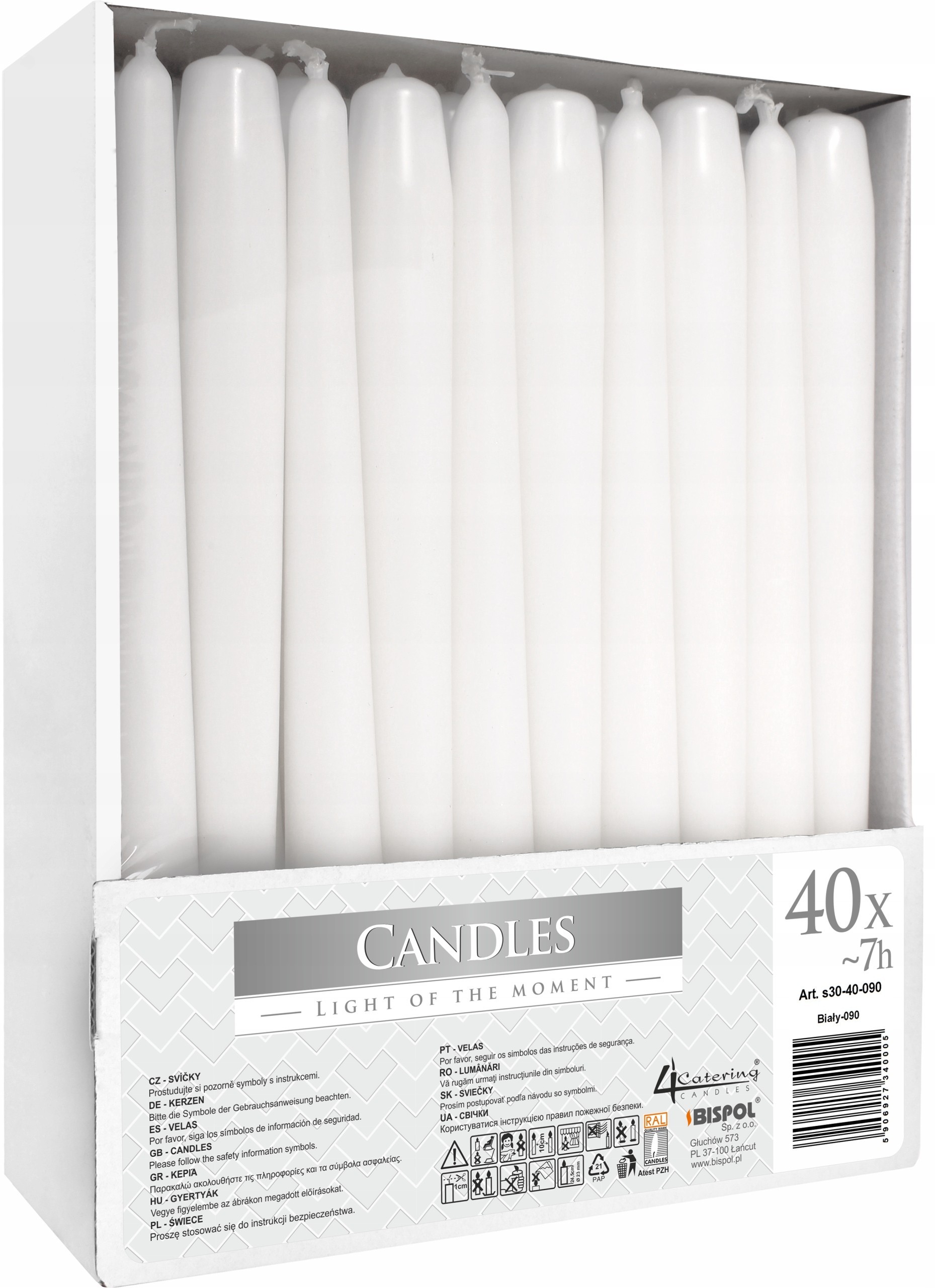 Свеча настольная коническая BISPOL 7H 24.5CM S30-40 БЕЛАЯ 40 шт.