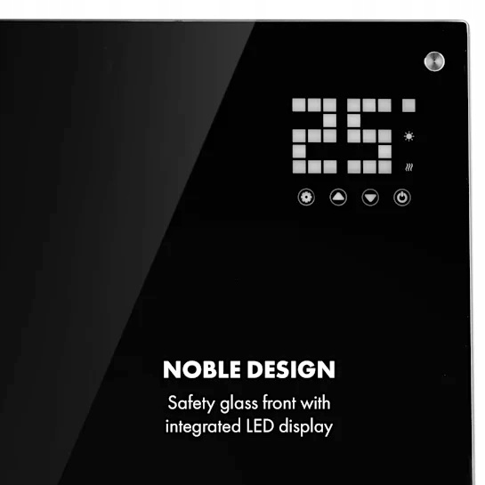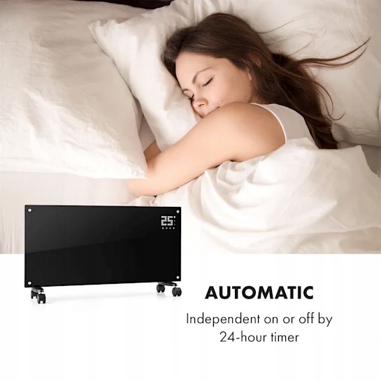 КОНВЕКЦИОННЫЙ НАГРЕВАТЕЛЬ СТЕКЛЯННЫЙ ТАЙМЕР ТЕРМОСТАТ LED IP24 45°C ECO 2000W ДИСТАНЦИОННЫЙ