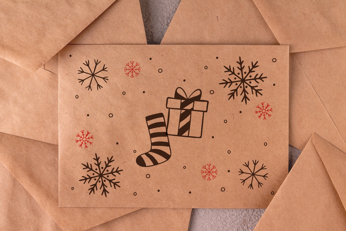Красивый крафт-конверт с рождественским принтом станет прекрасным дополнением к праздникам и детям, и взрослым!