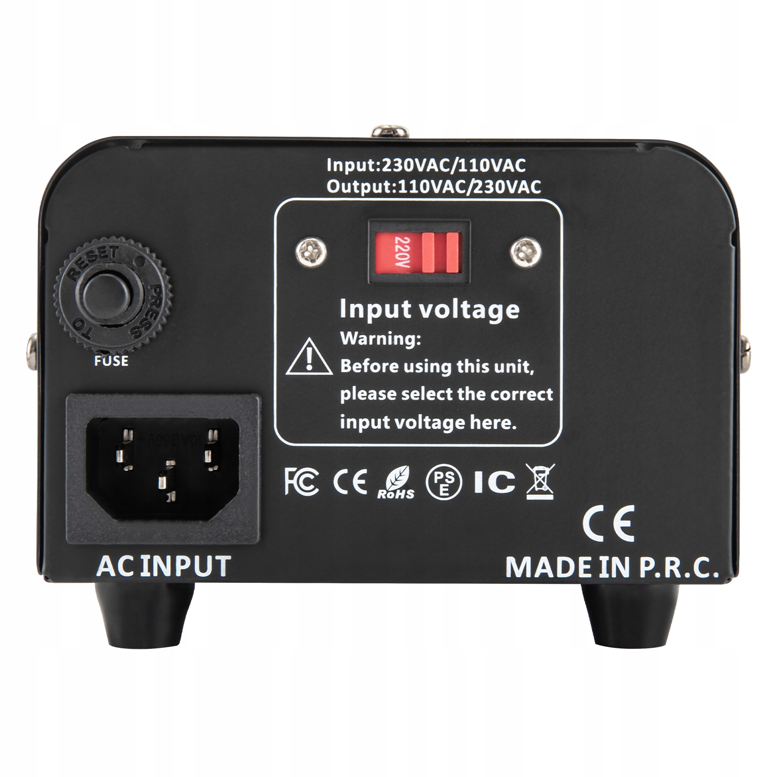 - 2. Подключитесь к сети 220В и выходам 110В, выберите кнопку 220В на задней панели изделия; Входная и выходная мощность 220 В 110 В Выберите кнопку 110 В на задней панели изделия.