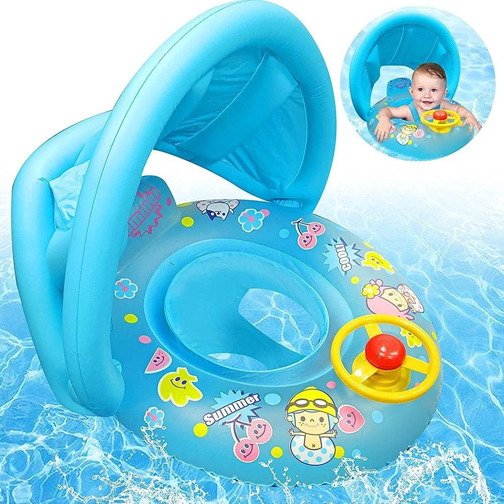 KOŁO DO PŁYWANIA MOTORÓWKA PONTON DLA NIEMOWLĄT DZIECI SIEDZONKO Z DASZKIEM