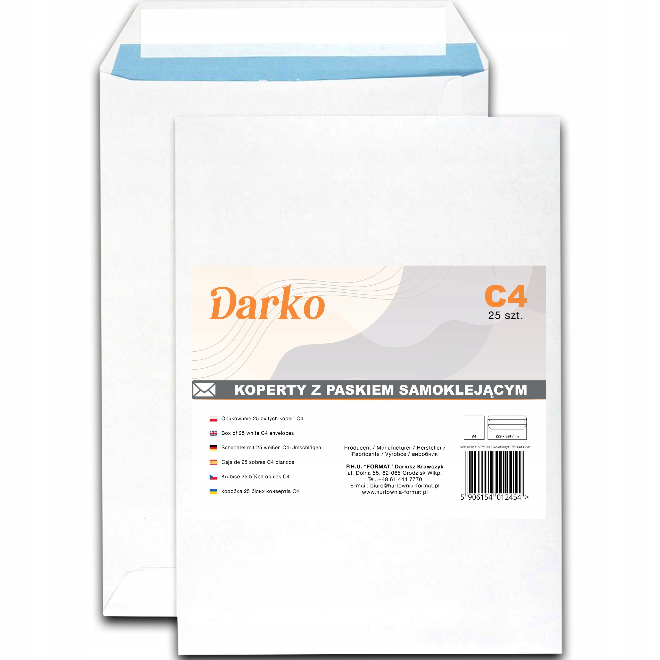 KOPERTY LISTOWE BIUROWE C4 BIAŁE OPAKOWANIE 25SZT DARKO SAMOKLEJĄCE 229x324