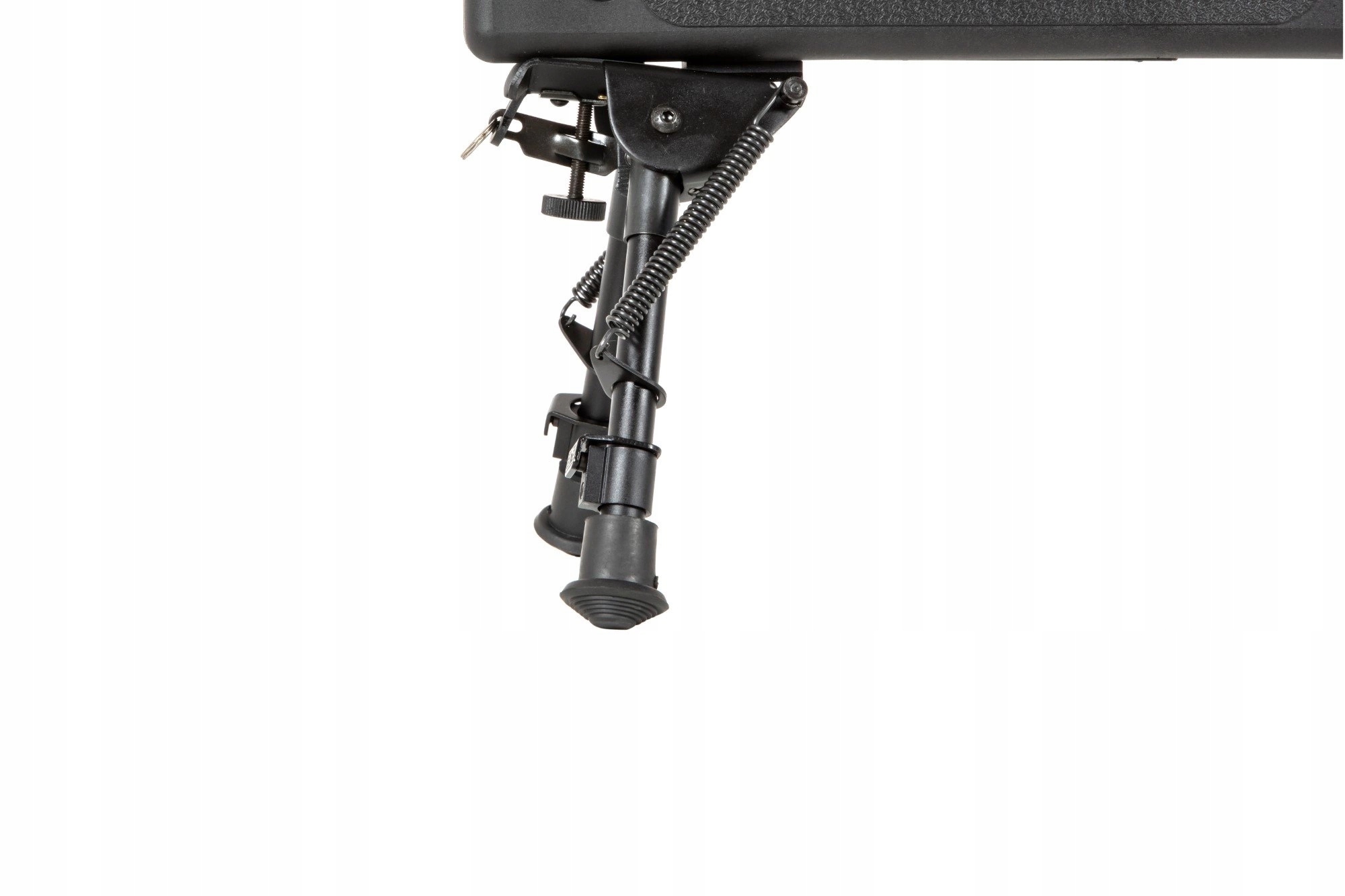 Снайперская копия Specna Arms оснащена простым и надежным четырехтактным механизмом, который необходимо перезаряжать перед каждым выстрелом. Реплика изготовлена из металла и армированного пластика. Весь внешний ствол в сборе выполнен из металла вместе со ствольной коробкой, спусковым крючком и рукояткой заряжания, а также планками RIS/Picatinny и всеми элементами крепления, такими как винты. Реплика также имеет специальную полимерную монтажную планку RIS, которая размещается на цевье над стволом в передней части копии. Эта направляющая позволит установить дополнительные аксессуары, такие как коробки AN/PEQ. Цевье с прикладом, нащечник, затыльник и магазин изготовлены из прочного пластика. Сам затыльник отделан удобной резиновой накладкой, ее толщину можно регулировать благодаря набору сменных накладок. В сочетании с регулируемой подщечкой это позволяет настроить приклад в соответствии с предпочтениями стрелка.