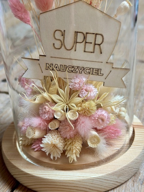 Kopuła szklana z suszonymi kwiatami róż 21 cm prezent na Dzień Nauczyciela