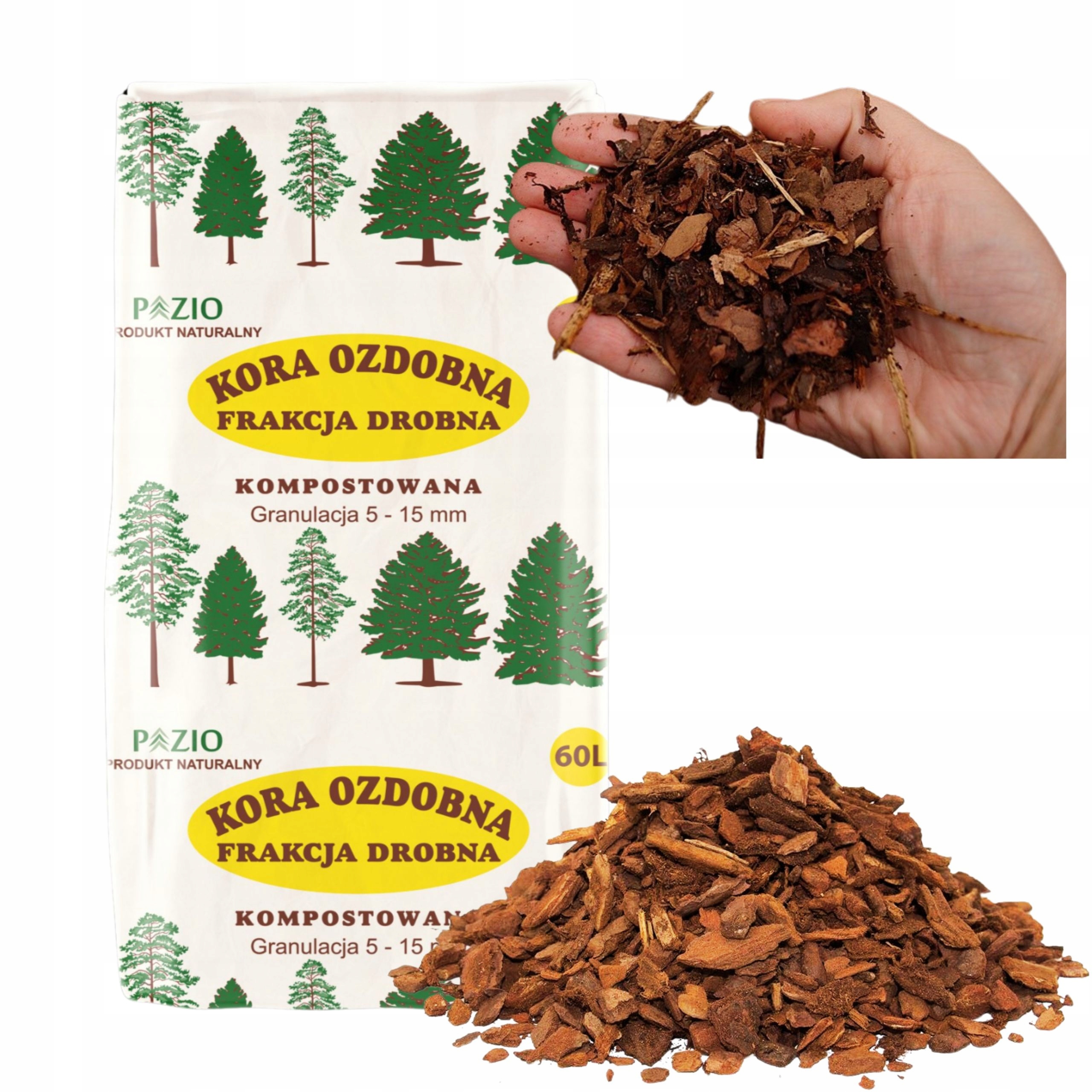 KORA SOSNOWA DROBNA 5-15 mm 60L KOMPOSTOWANA OGRODOWA PRZESIEWANA SORTOWANA