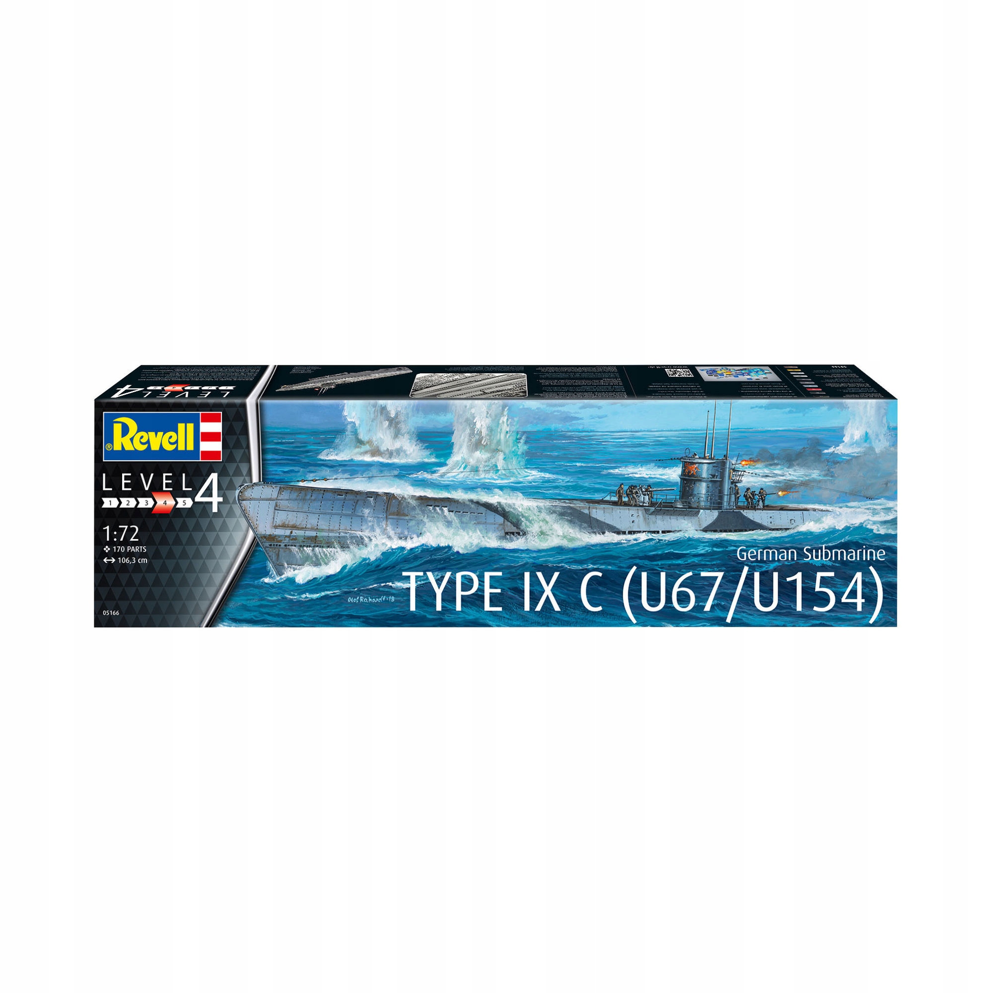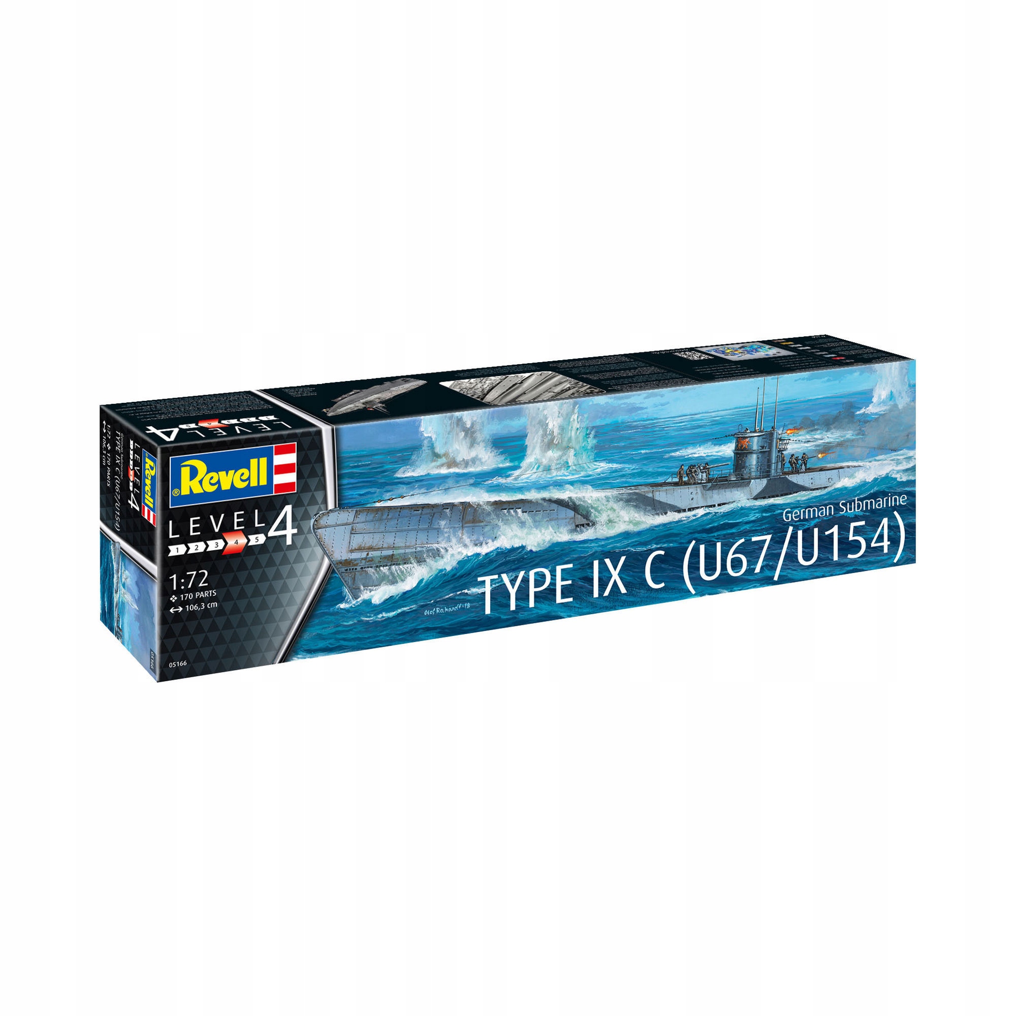 Набор для сборки океанской модели немецкой подводной лодки типа IXC. Первые подводные лодки были оснащены так называемыми «маленький» киоск с небольшим «зимним садом». - Изображение корпуса клепано-сварной конструкции - Дверцы торпедных аппаратов могут выбираться открытыми или закрытыми - Выдвижные перископы и антенны - Детализированные боковые стенки боевой рубки с компасом и башенным люком - Отклоняющие подводные решетки антенны и изоляторы - Пряжа для моделирования антенн - 2-см и 3,7-см зенитная пушка - 10,5-см пушка Аутентичное изображение следующих модификаций: - Подводная лодка Тип IX C, U154, Первый патруль, Северная Атлантика, 02.07.1942 - 03.01.1942 - Тип подводной лодки IX C, U67, учебный, Балтийское море, зима 1941 г.