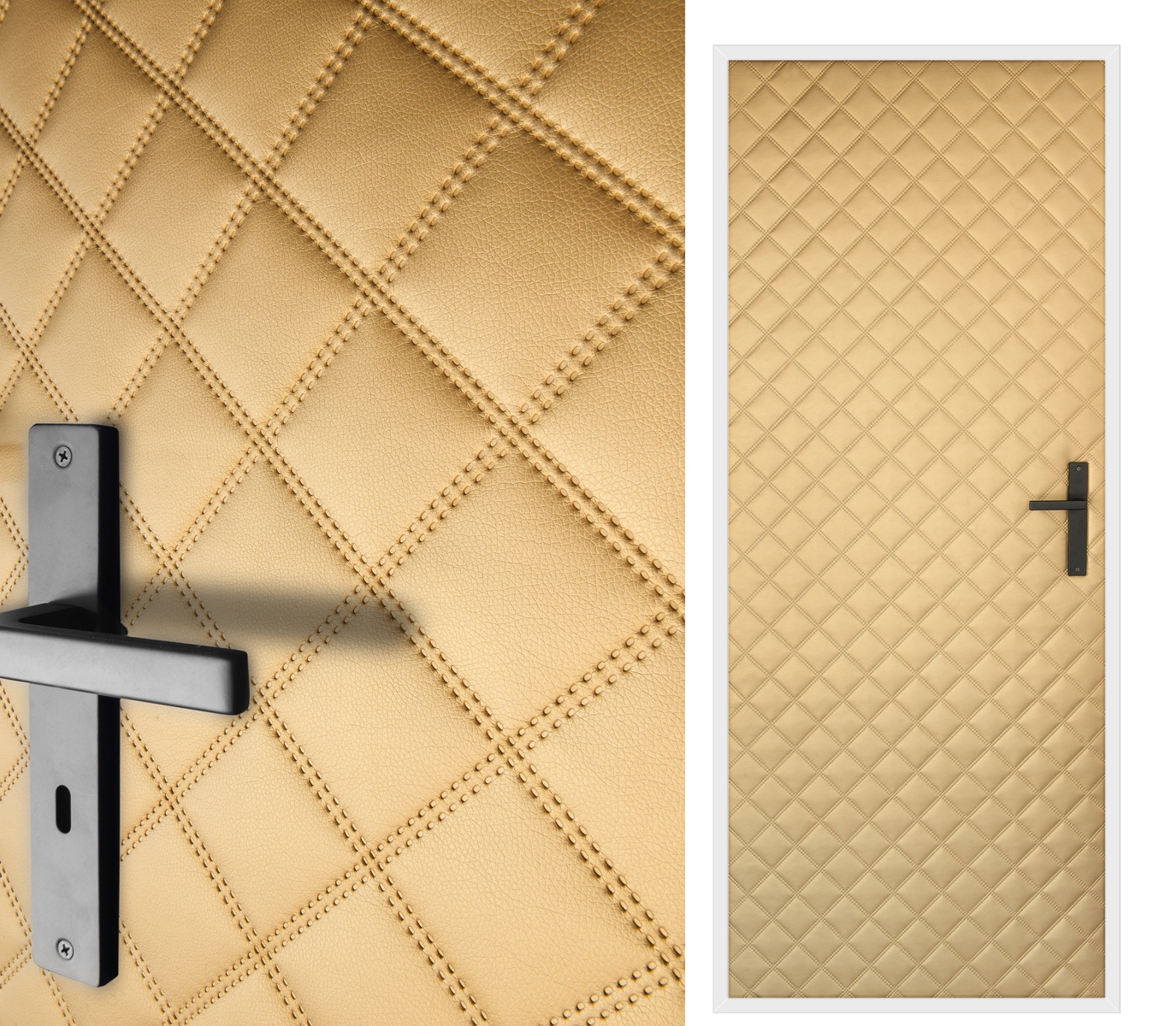 Обивка из простеганной ультразвуком экокожи (безрезьбовой) в ромбовидный узор 7х7см с глубоким 3D эффектом, на подкладке с толстым обивочным утеплителем 250гр/м2. Он оправдает ожидания даже самых требовательных клиентов. Новый дизайн!