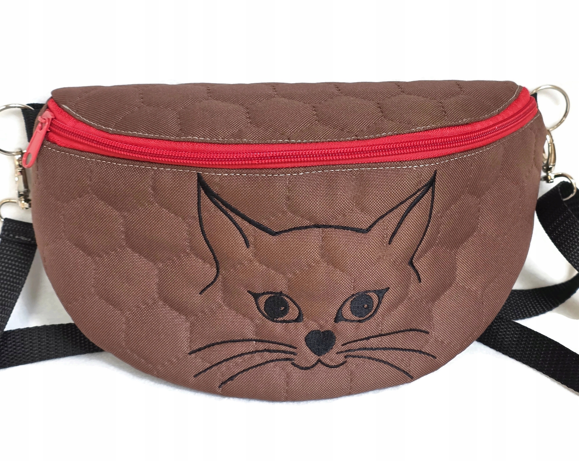 Коричневая поясная сумка с котом, вместительная на плечо.