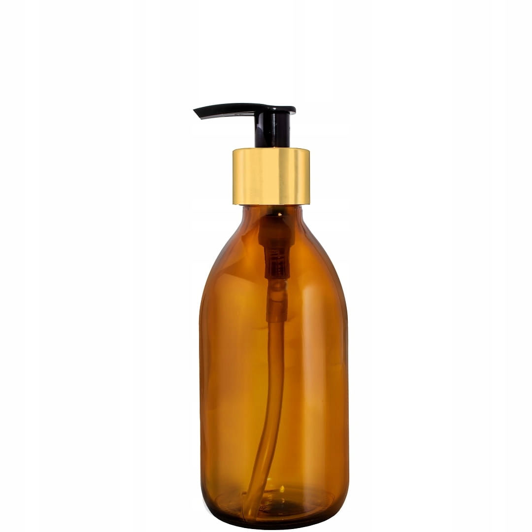 КОРИЧНЕВА СКЛЯНА ПЛЯШКА 250 МЛ З ЧОРНИМ ЗОЛОТОМ НАСОСОМ