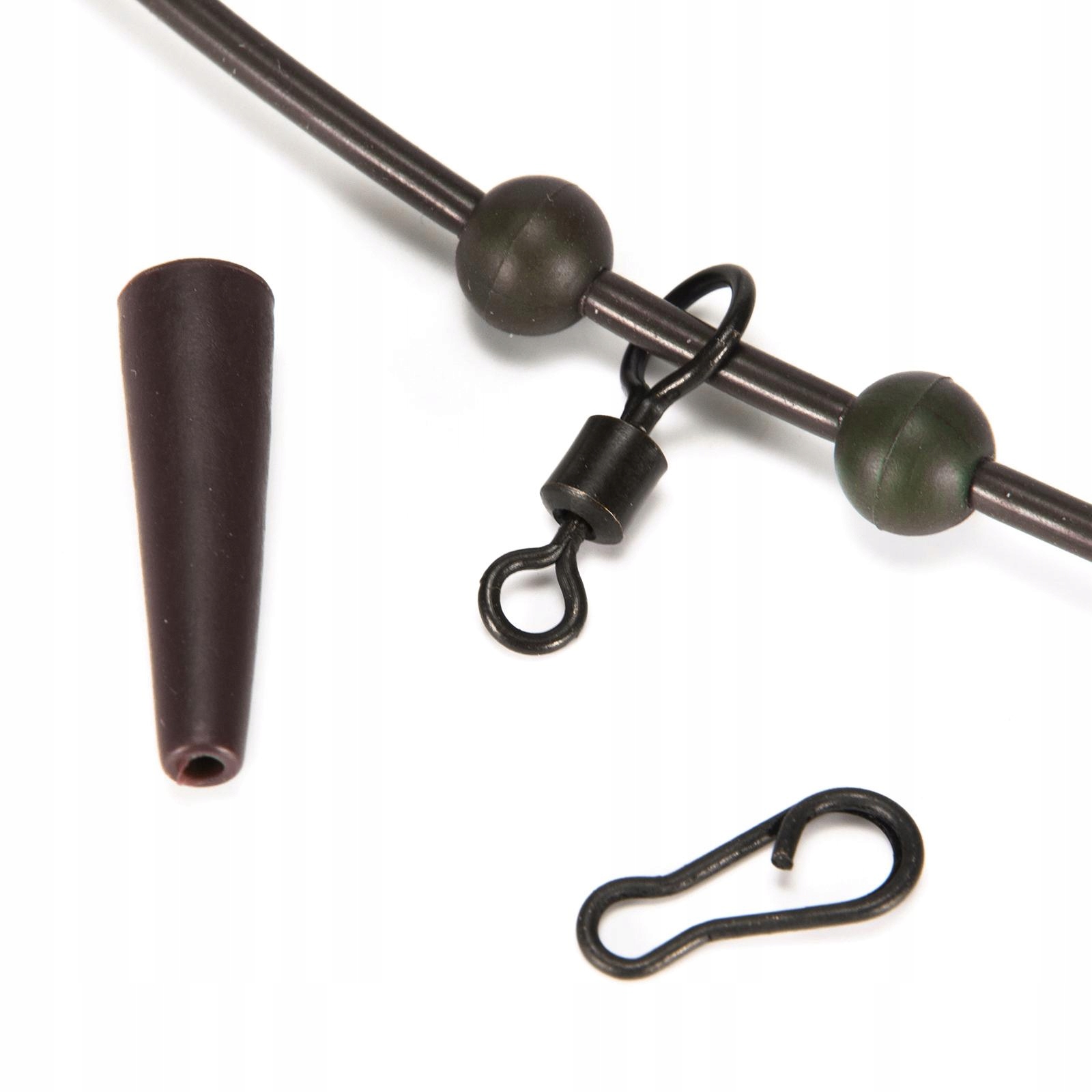 Аксессуары для ловли карпа включают силиконовые 3 рукава для поводка длиной 1 м, 3 вертлюга с проушиной, 6 бусинок-вертолетов, 3 зажима, 3 рукава для крючка