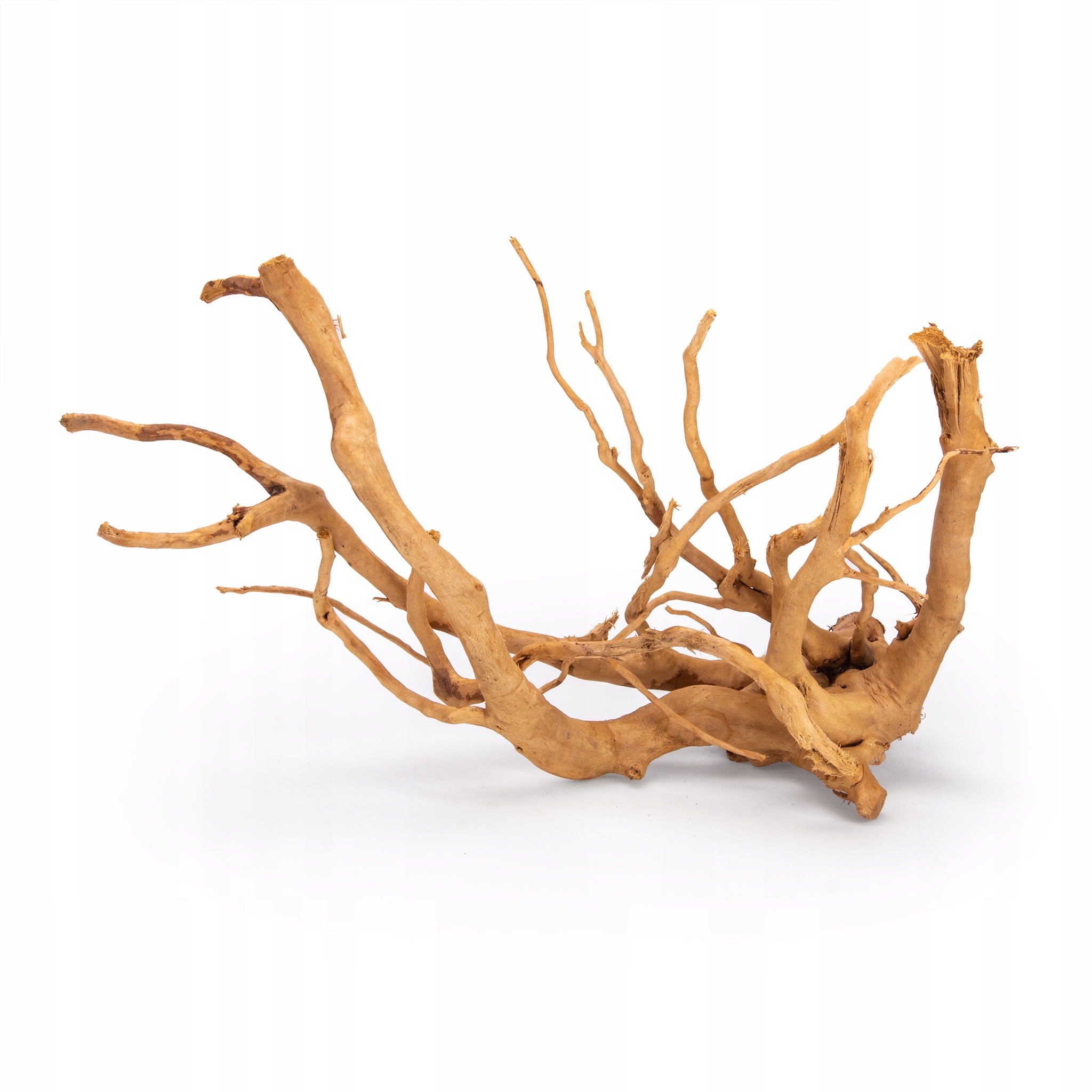 - Не все корни тонут сразу. Более легкие детали требуют немного больше времени. Чтобы ускорить этот процесс, рекомендуем прикрепить ко дну корень леской или прижать его другим украшением/камнем, которых тоже немало в нашем предложении.