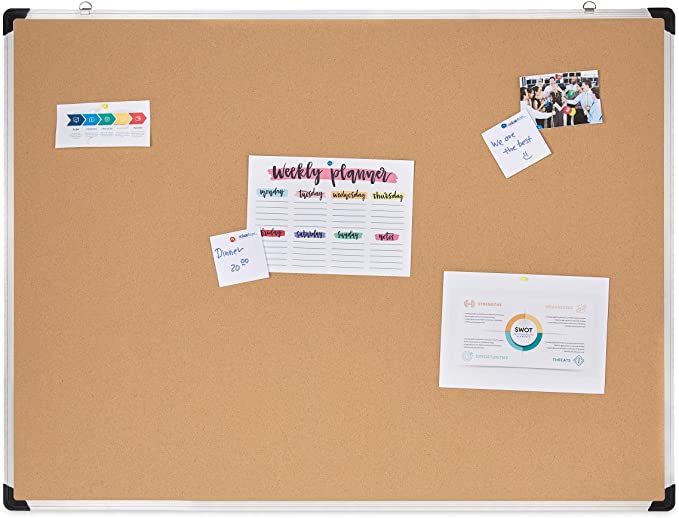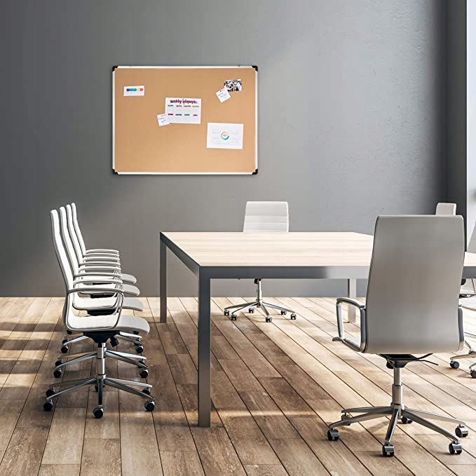 Опасность заблудиться в море заметок и бумаг может сделать невозможным эффективную работу в офисе или учебе. С пробковой доской объявлений вы внесете порядок в хаос и всегда будете организованы. Алюминиевая рама обеспечивает устойчивость и в то же время очень легкая. Петли для подвешивания можно перемещать, что позволяет гибко повесить пробковую стену. Благодаря закругленным пластиковым элементам риск пораниться об углы практически отсутствует.