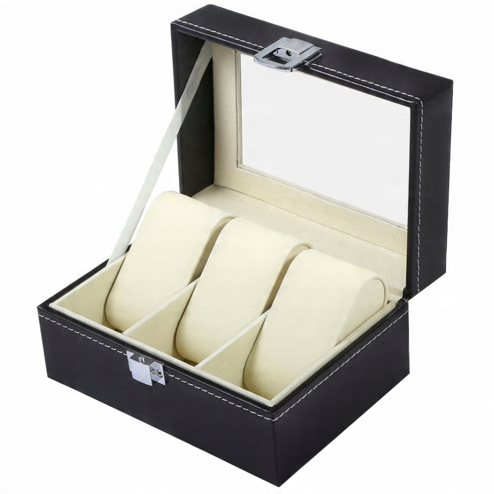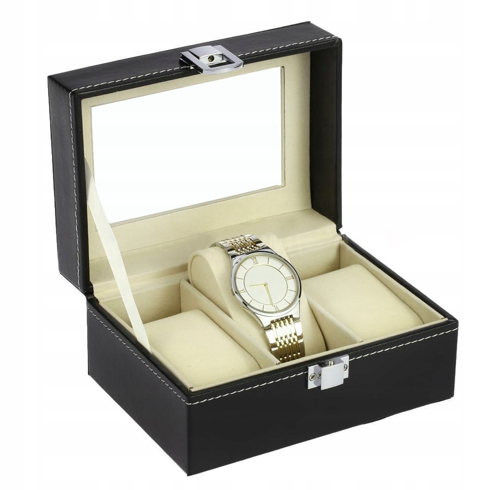 Элегантная коробка для часов имеет 3 отделения, в которых можно разместить не только часы, но и другие украшения. Чехол имеет элегантный черный цвет и белые швы, что придает всему изящество и стиль. Крышка корпуса часов прозрачная, поэтому коробку для часов можно использовать не только для хранения, но и для элегантной демонстрации содержимого.