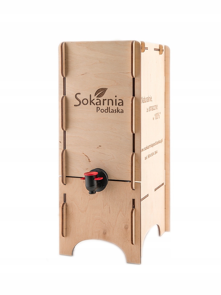 Это элегантная многоразовая деревянная коробка для сока, в которой можно хранить 3 или 5-литровую емкость сока.