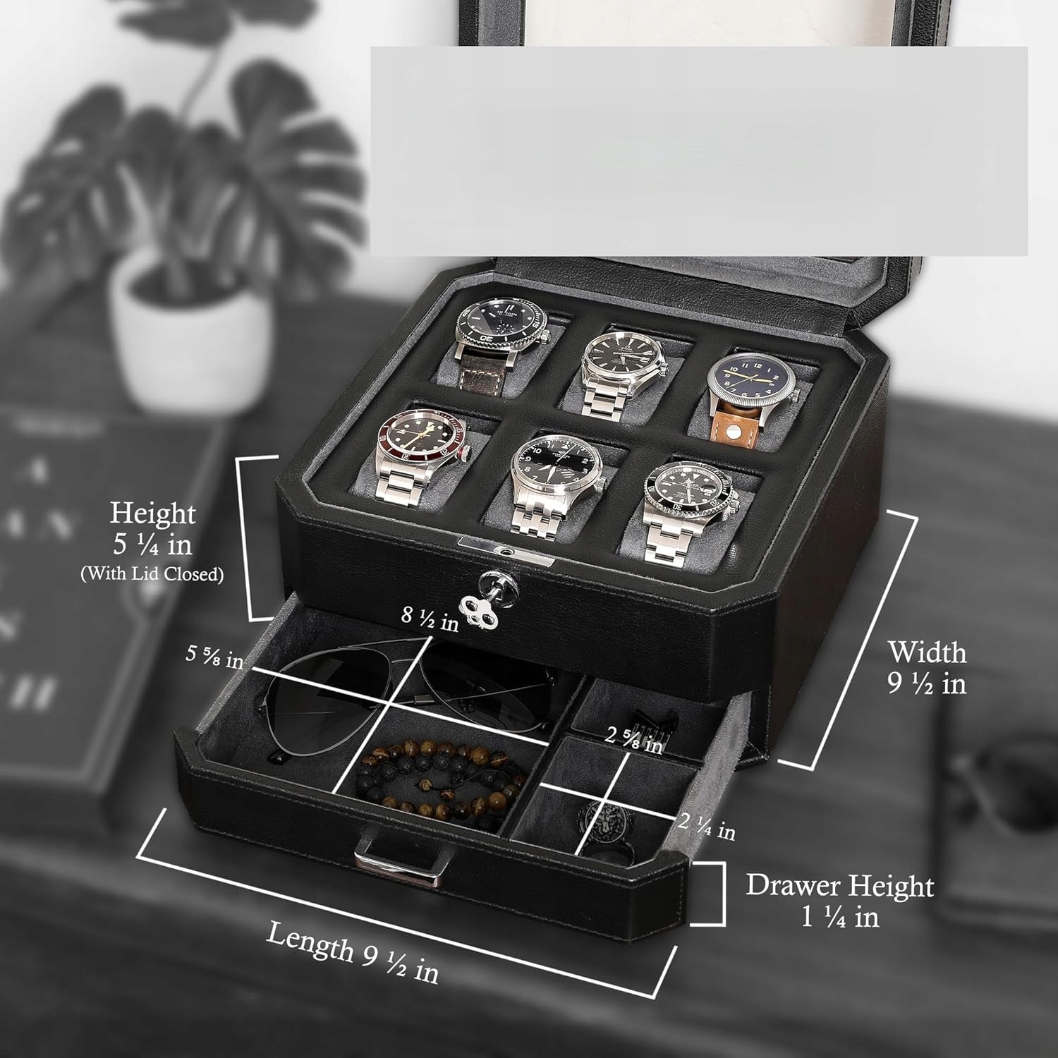 - 6 БОЛЬШИХ ОТДЕЛЕНИЙ ДЛЯ ЧАСОВ: каждая подушка позволяет аккуратно разместить маленькие или большие часы на расстоянии до 60 мм друг от друга. Между крышкой и подушками достаточно места, чтобы разместить часы любого размера. Коробки для часов Rothwell станут прекрасным подарком на День отца, День матери, дни рождения, юбилеи, День святого Валентина, выпускные, праздники, выход на пенсию и корпоративные мероприятия.