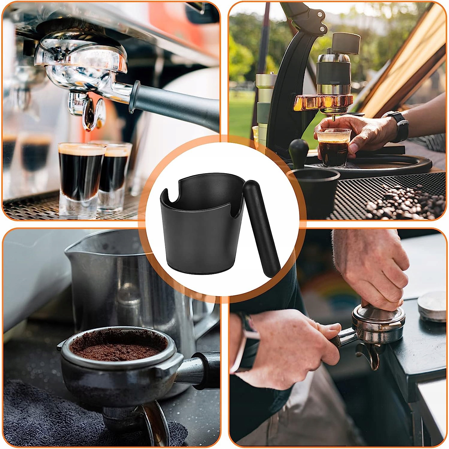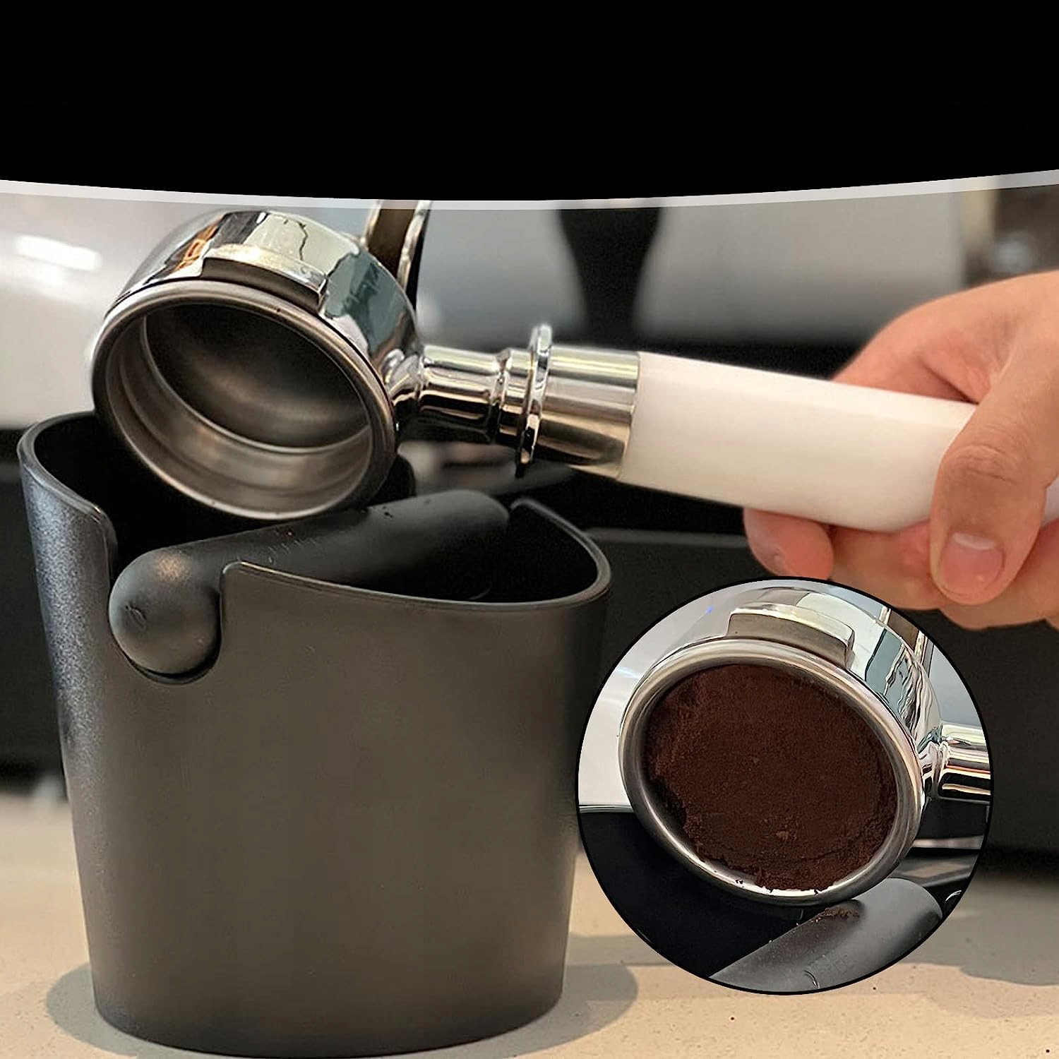 🍀Высококачественный контейнер для кофе имеет эргономичную форму: что позволяет легко очищать контейнер для кофейной гущи. Используйте , а ручка контейнера для эспрессо предотвращает его проливание на поверхности. Задняя стенка предотвращает разбрызгивание.