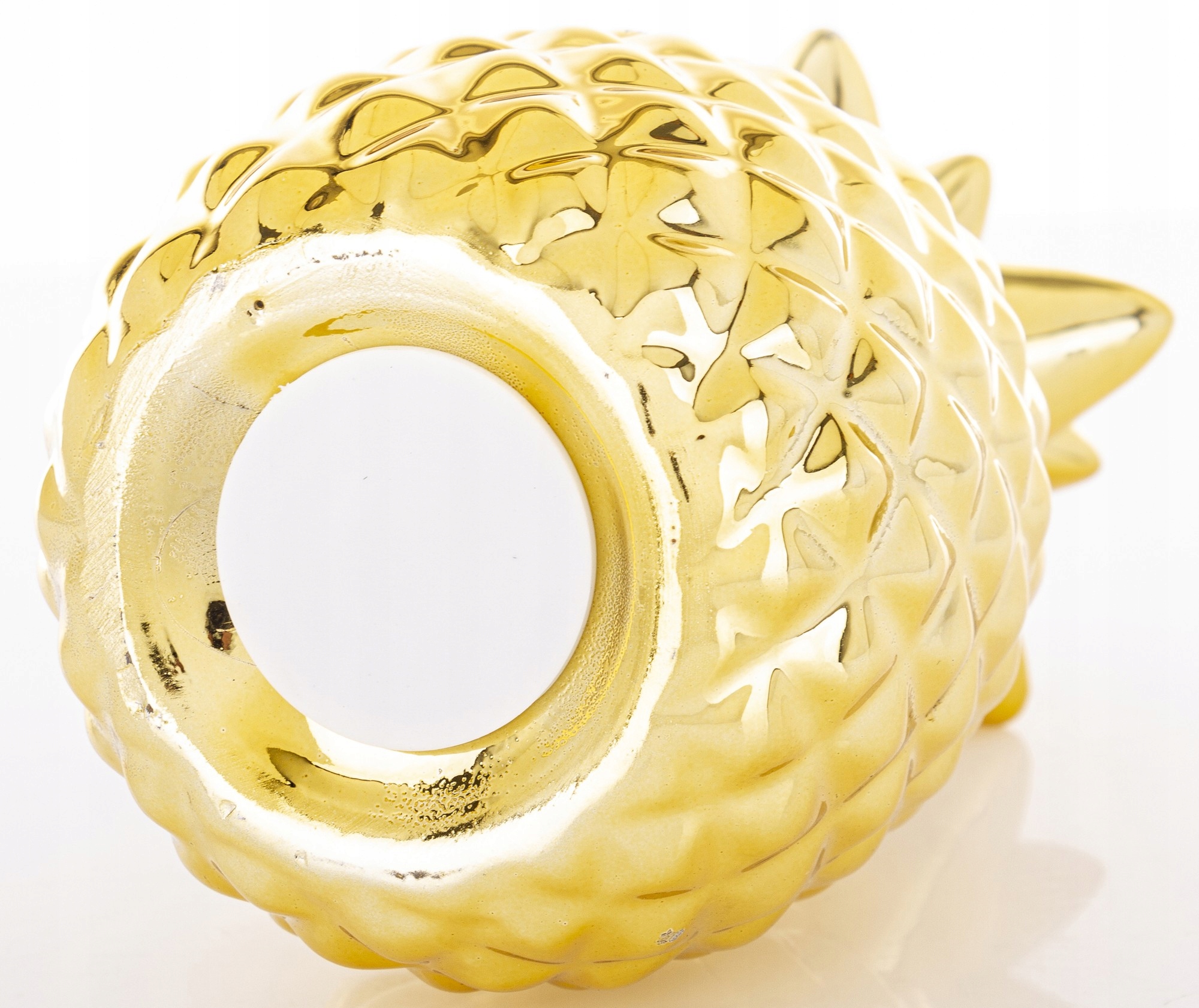 Представляем элегантную керамическую копилку в форме ананаса, которая впечатляет роскошной золотой отделкой и дизайнерским характером. Это уникальное украшение, привлекающее внимание, освещающее интерьер и одновременно выполняющее практическую функцию экономии денег.