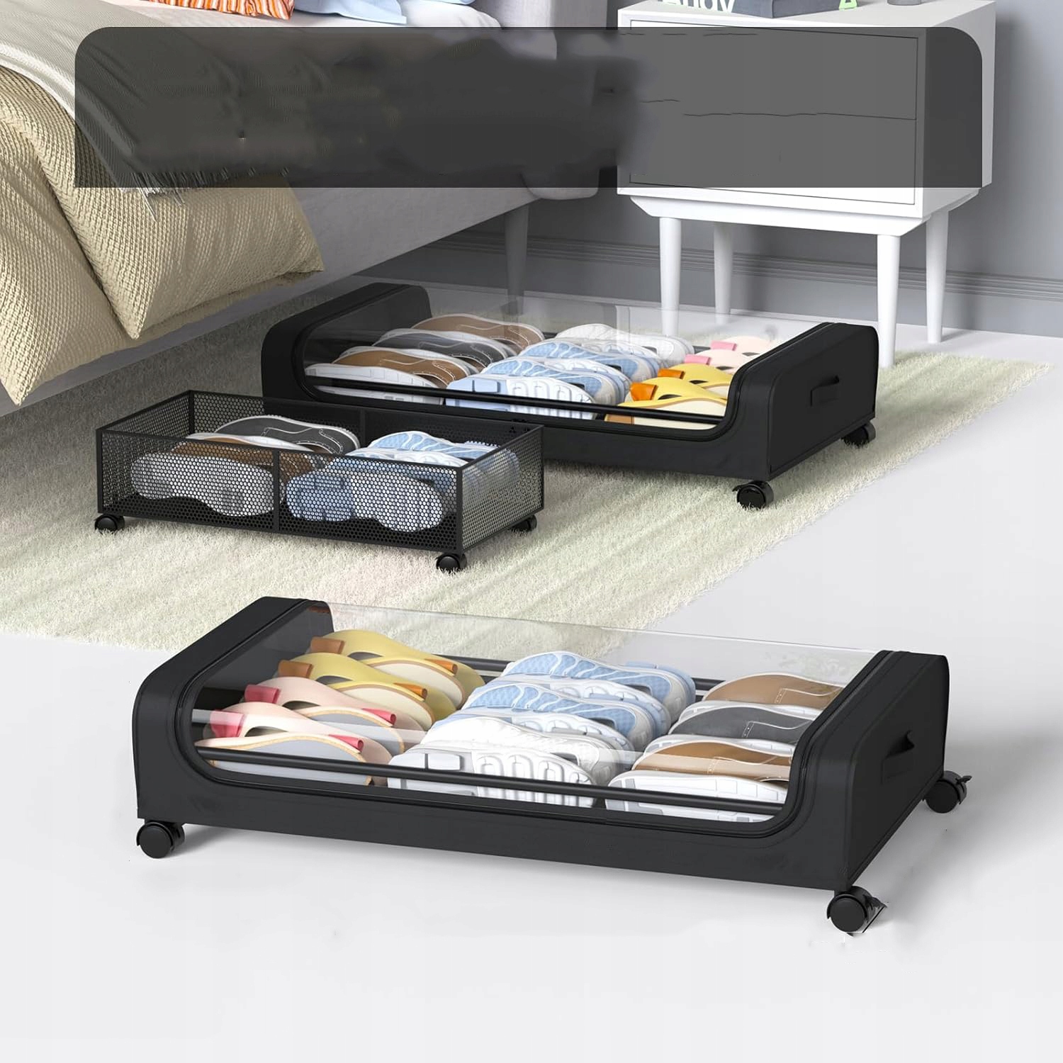 Коробка для обуви под кроватью, складная коробка для хранения обуви, черная