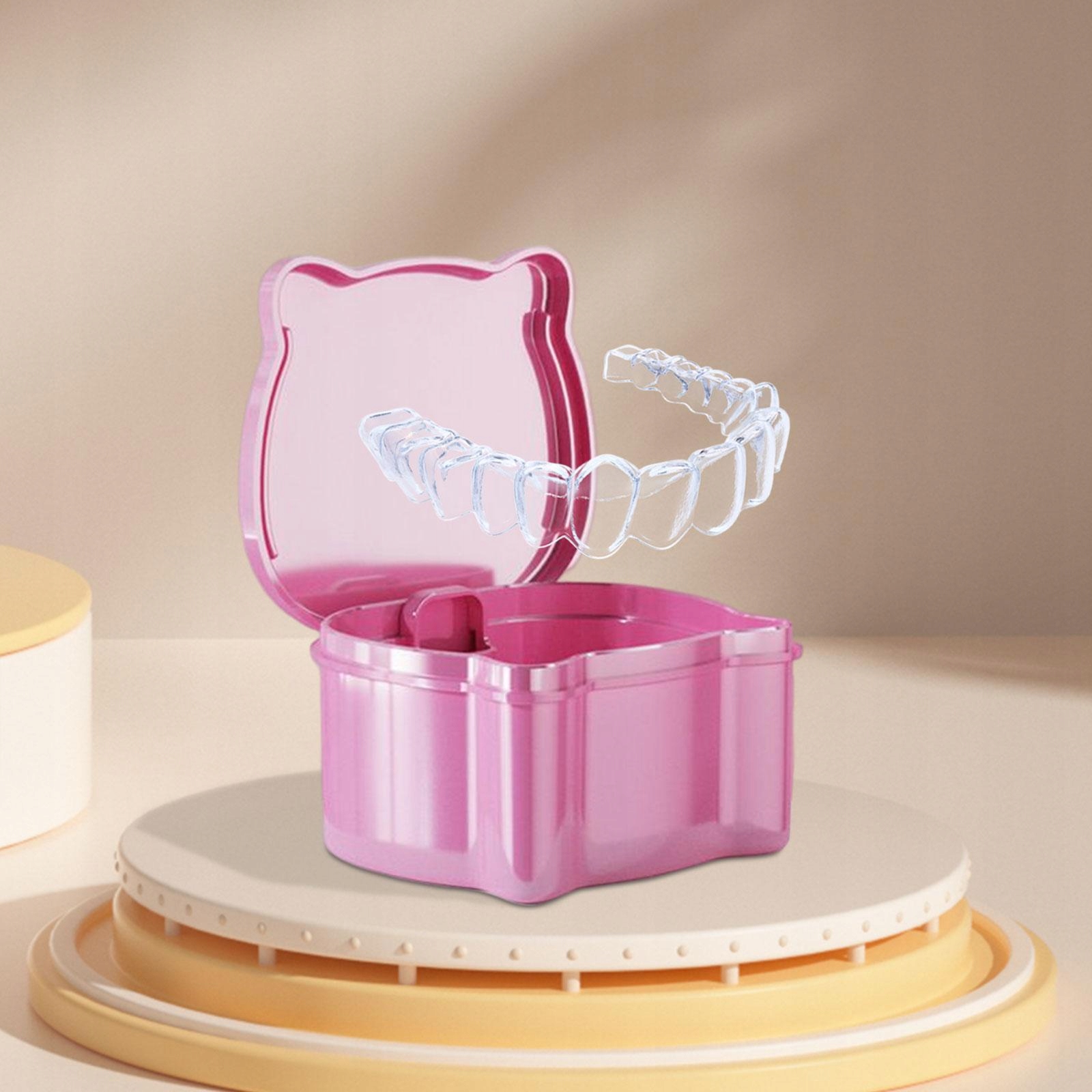 [Простота в использовании] Очиститель для зубных протезов футляр, небольшой и портативный дорожный футляр, легко открывается и закрывается, прост в использовании.