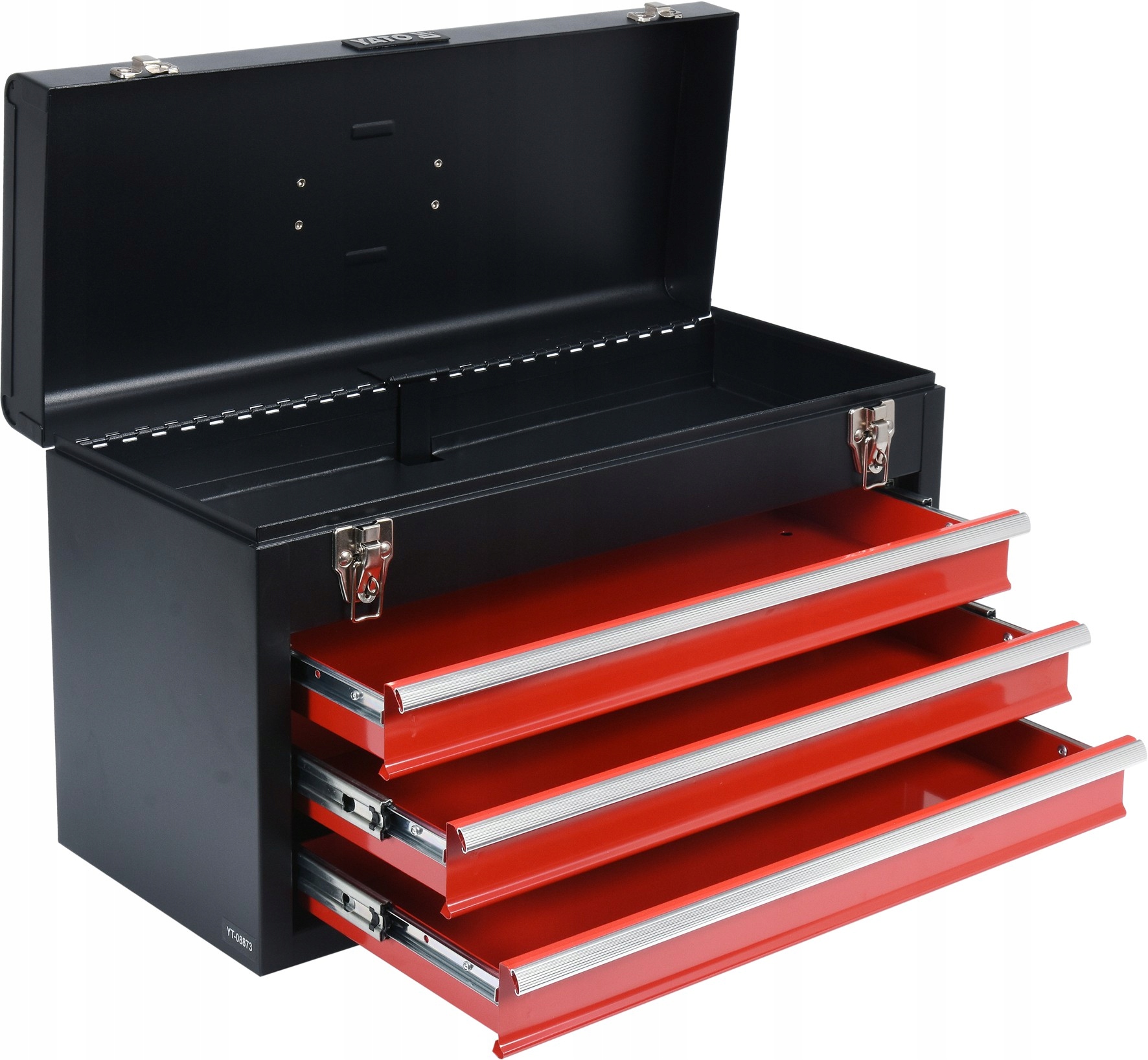 Ято -коробка для ручных инструментов мастерской, оснащенных ящиками , установленными на металлическом Ball Guides . У них есть дополнительное пространство для хранения Верхнее, закрытое металлическими снимками.