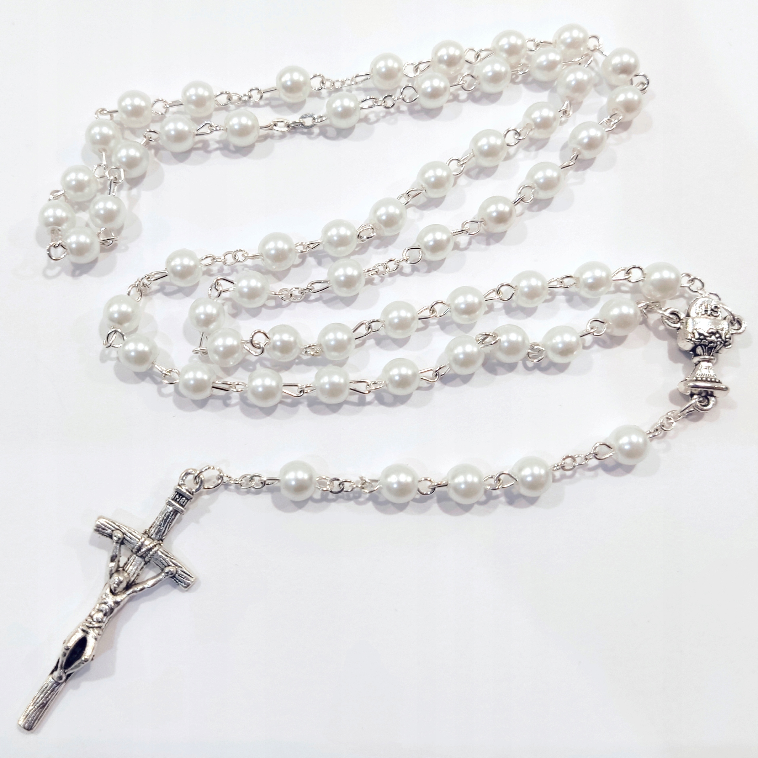 Невероятные четки из жемчужных бусин. Крест и соединитель чашки IHS из металла, необычайное внимание к деталям.