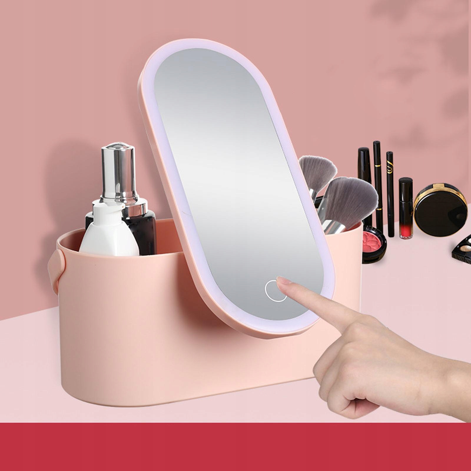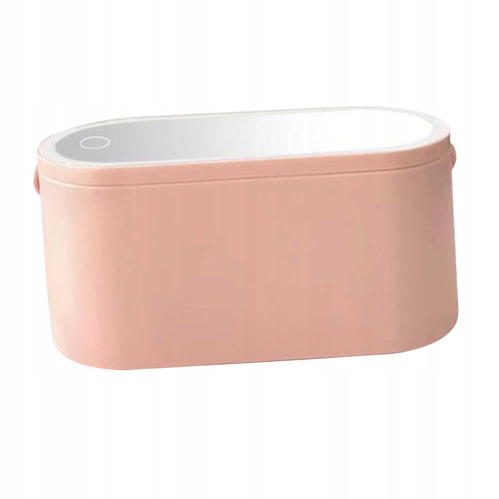 Ящик для хранения косметики с вращающимся зеркалом и светодиодной подсветкой для средств по уходу за кожей, розовый