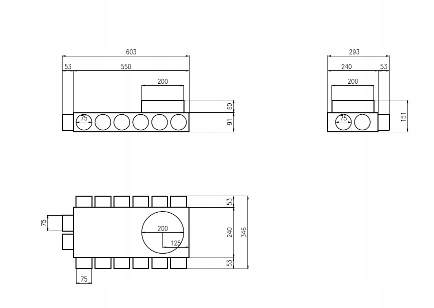 Коробка распределительная, распределитель вентиляционной трубы фи200/14х75мм