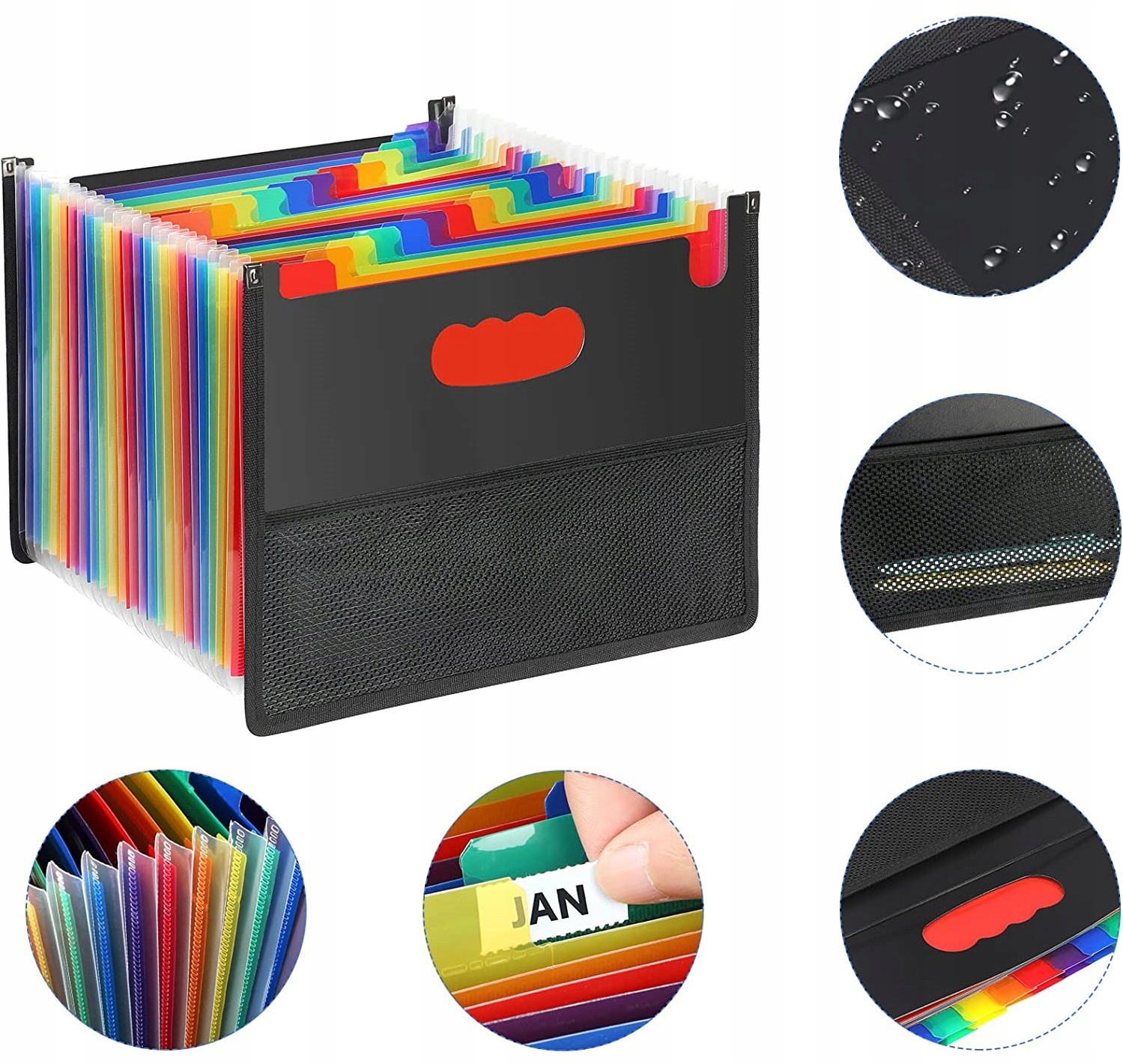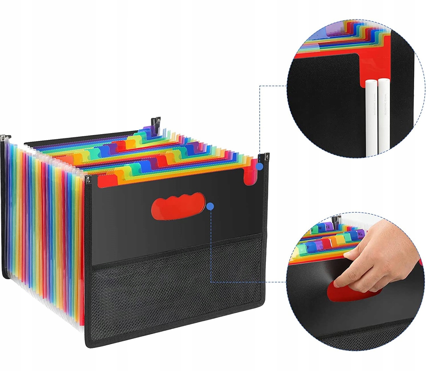 24 гибких кармана для документов формата А4, расширяющихся сверху и снизу. В них можно легко разместить документы. Они могут вместить до 3000 листов.