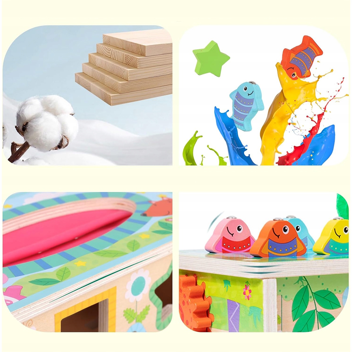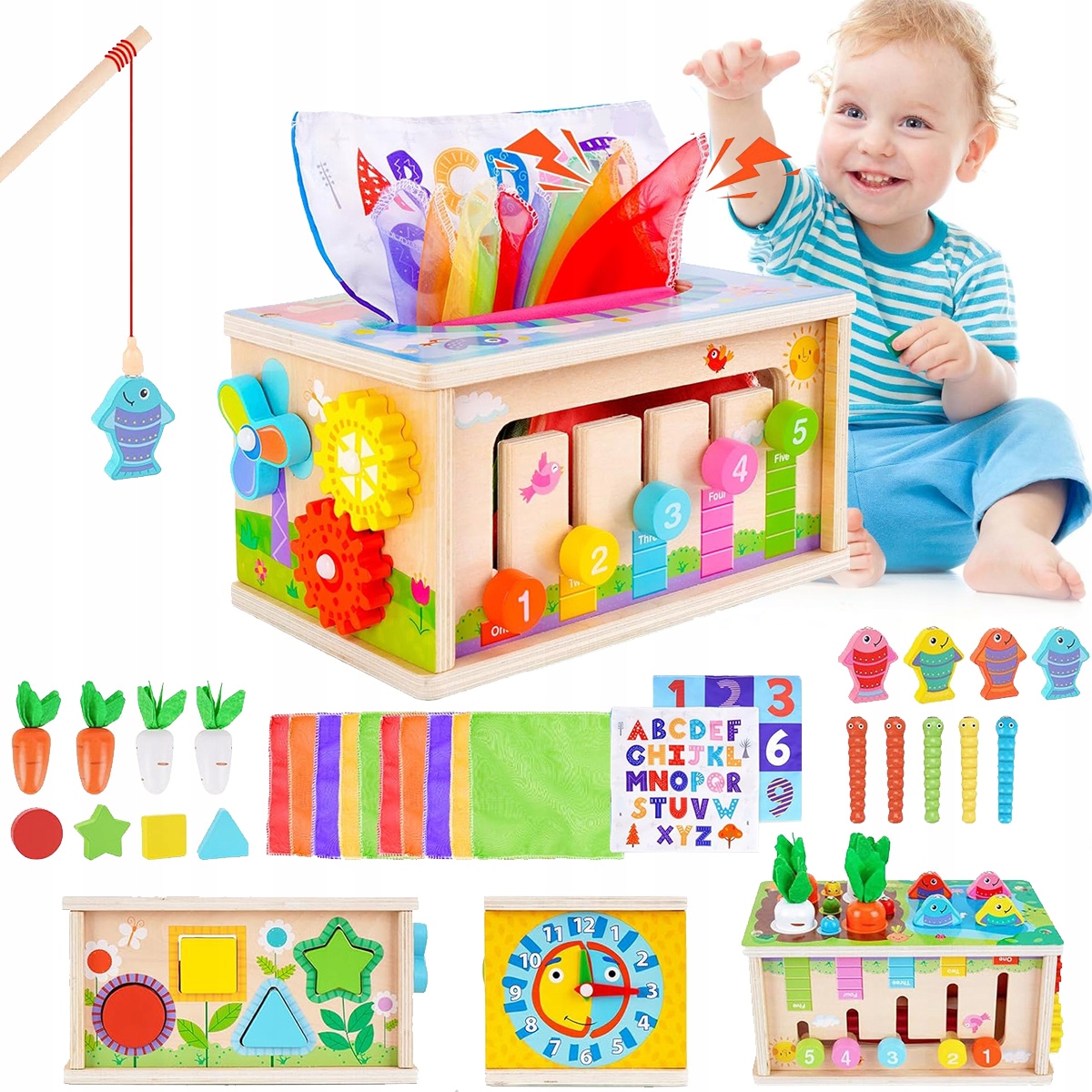 🍭 Развлечение 6-в-1 для маленьких исследователей: от забавной игрушки из тканевой коробки, интерактивных обучающих часов, вращающихся шестеренок, сортировщика фигур, игры с рыбалкой и морковкой до увлекательного числового лабиринта — каждый элемент подарит вашему ребенку часы смеха и открытий.