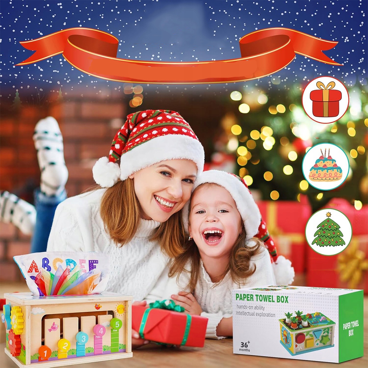 Игрушки Монтессори для детей от 6 месяцев, коробочка для салфеток 6 в 1 с шуршащей тканью, деревянный кубик для развития моторики для мальчиков и девочек 6-12 месяцев, игрушка для развития моторики для детей 1-3 лет, подарок ребенку