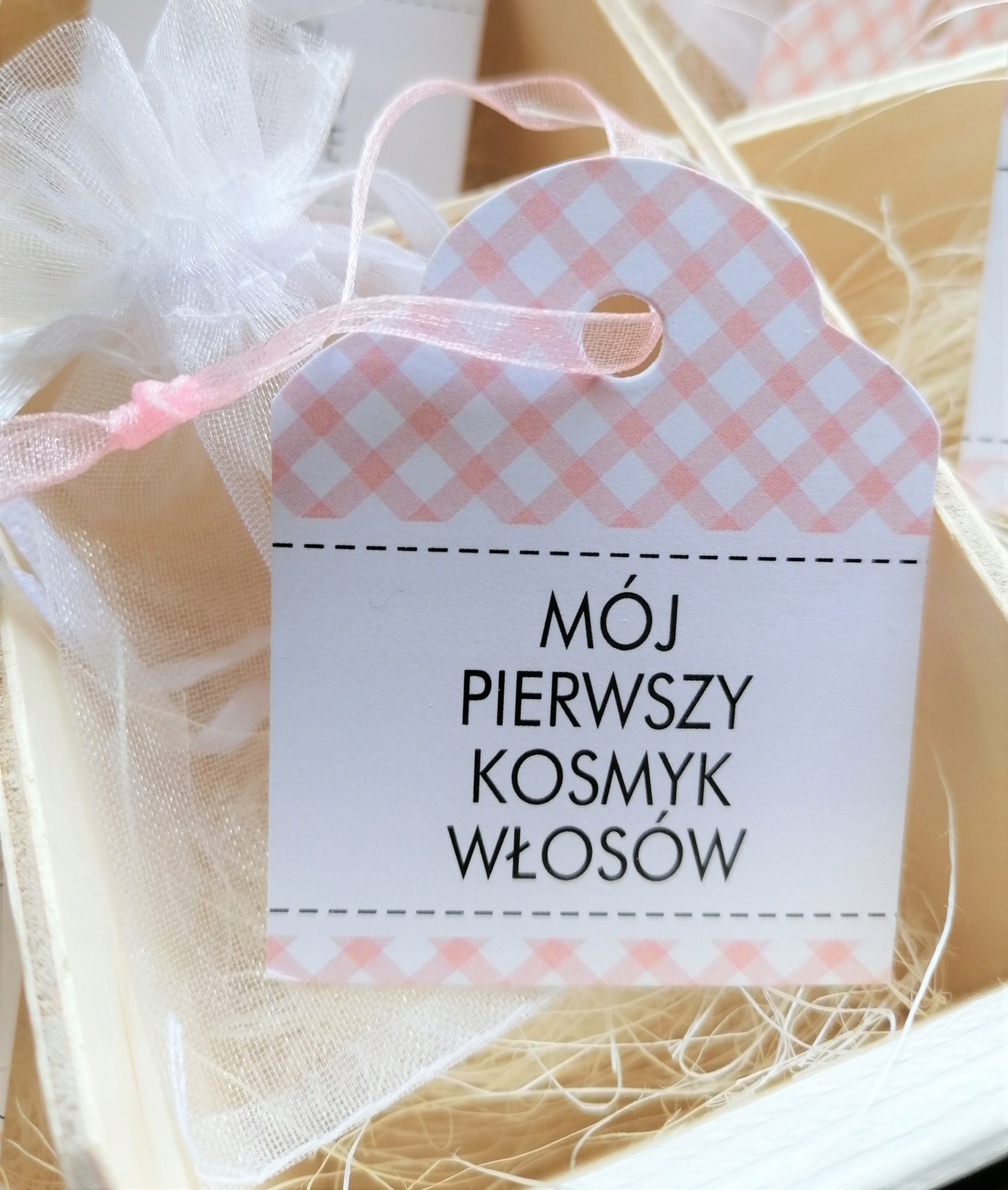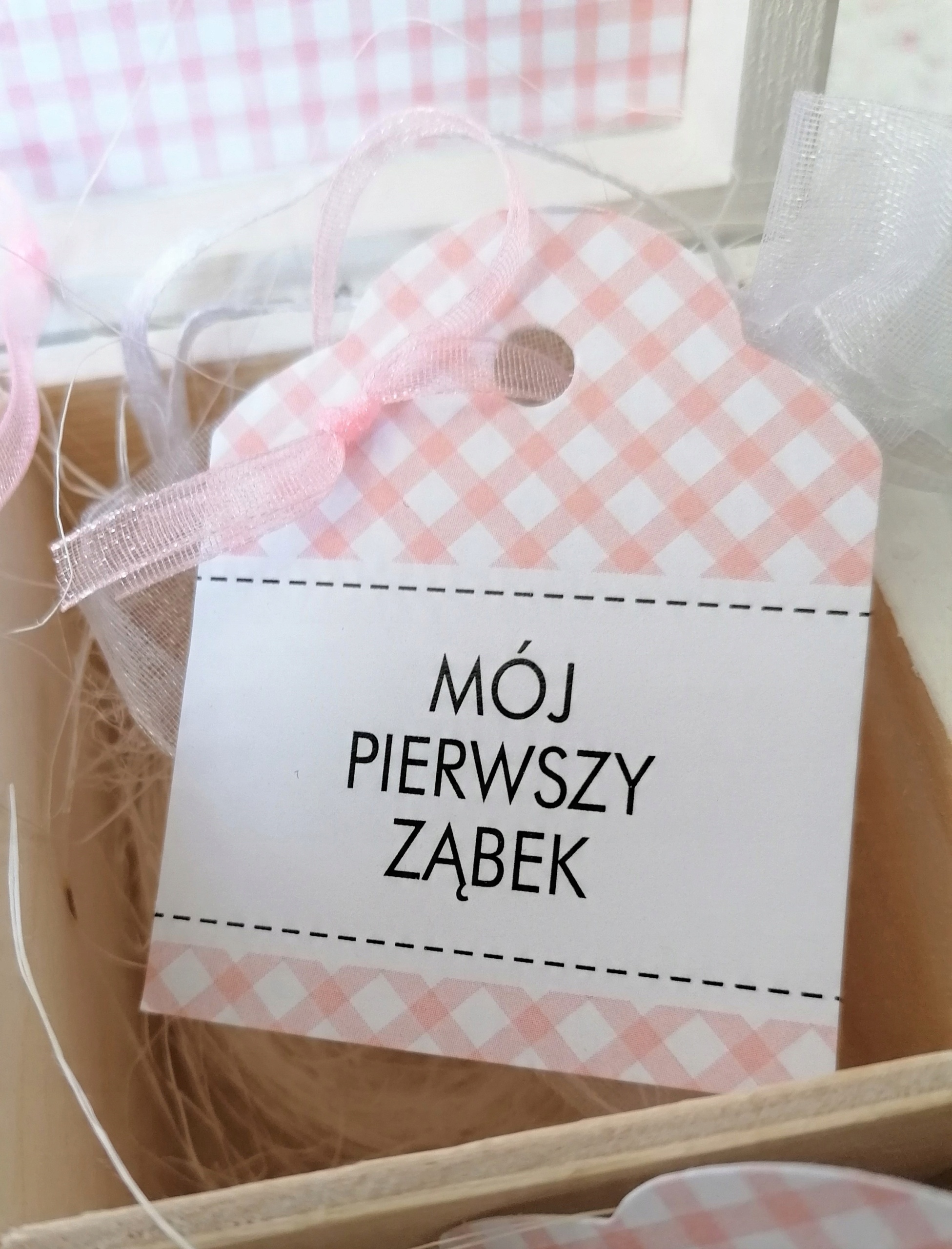Кроме того, внутри 2 белых тюлевых мешочка для первого зуба и первой пряди волос.