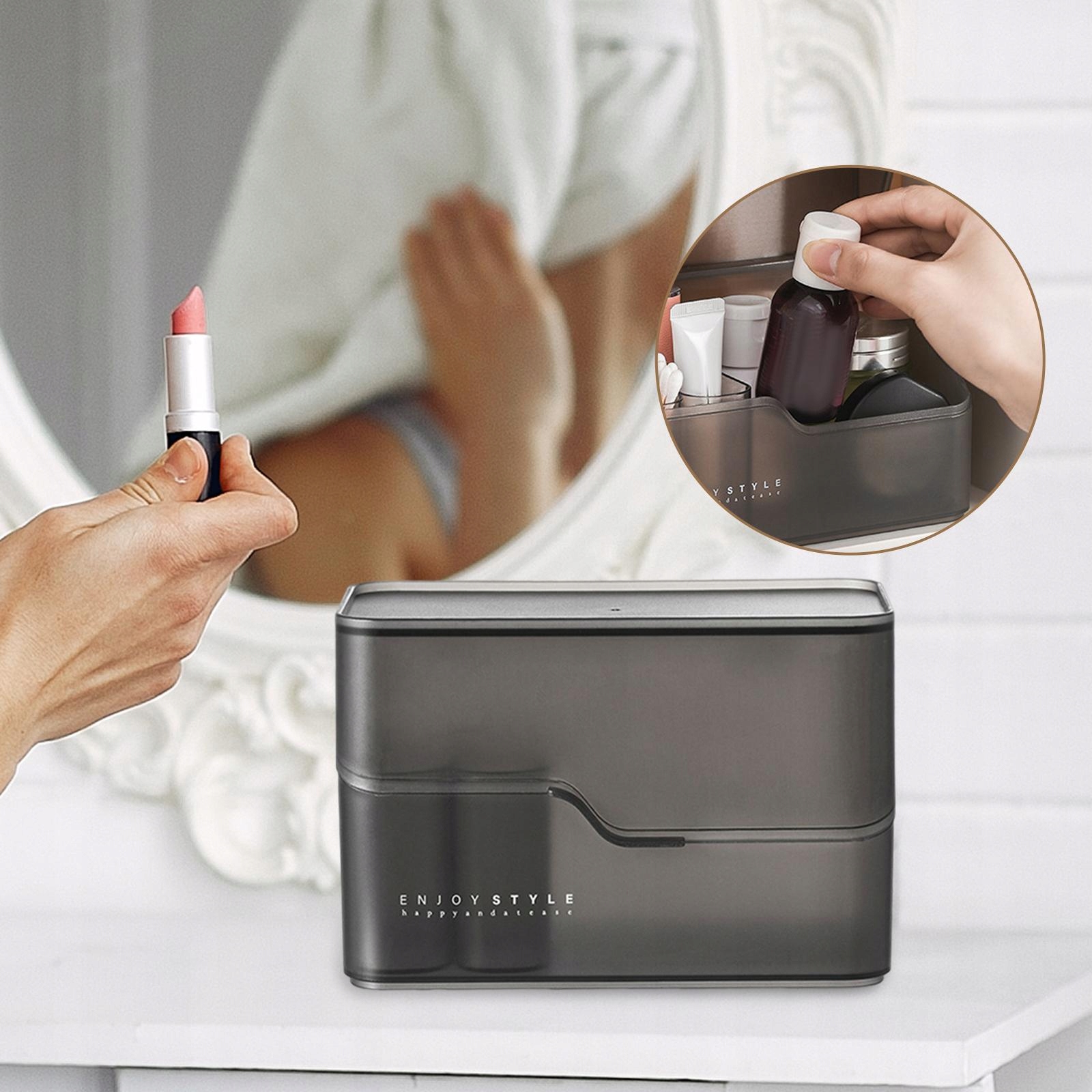 Коробка с организатором для косметики с крышкой многофункциональной косметической стойки в черном с компартментом