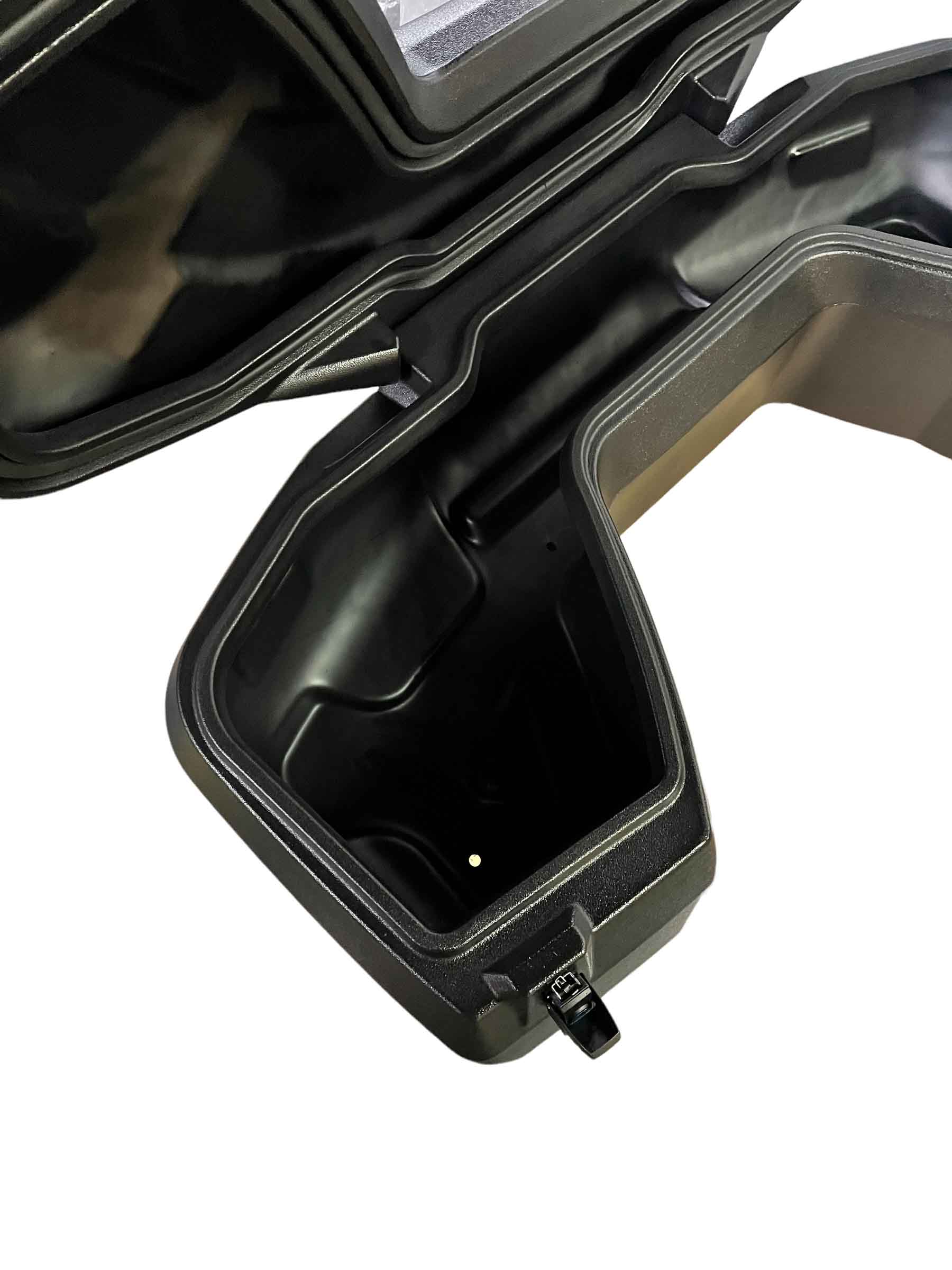 Кейс имеет емкость 115 литров и легко вмещает два шлема.