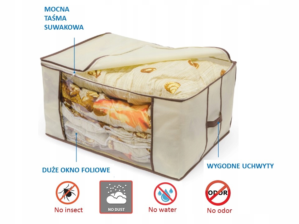 <ул>Коробки изготовлены из экологического нетканого полипропиленового материала плотностью 80 г/м2. Соответствующее каландрирование и расположение волокон гарантируют, что упакованные изделия имеют отличный воздухообмен и в то же время прекрасно защищены от пыли, грязи, клещей, насекомых и т. д. НЕТКАНЫЙ материал нетоксичен и не имеет неприятного запаха. Окно изготовлено из пленки ПВХ без фталатов.
