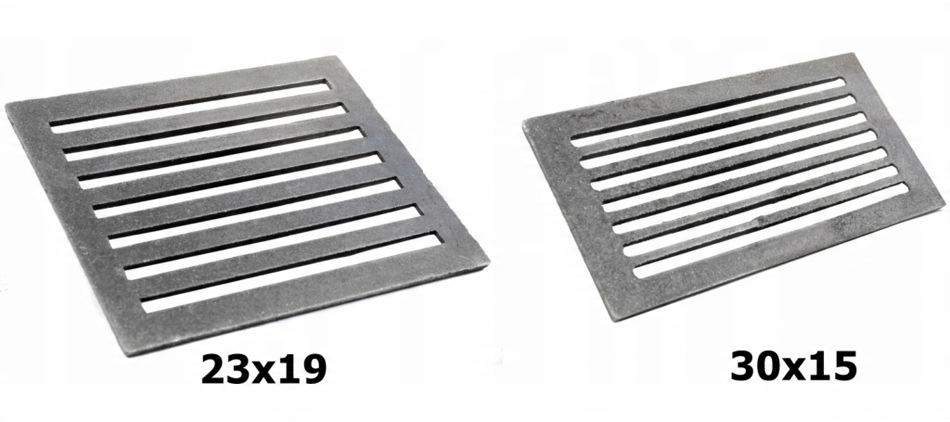 Высококачественная чугунная решетка, изготовленная на польском чугунолитейном заводе, с перфорированными отверстиями диаметром 15 мм. Расположение отверстий на поверхности решетки обеспечивает эффективную циркуляцию выхлопных газов. Отверстия выполнены коническими, что в сочетании с их диаметром гарантирует эффективный отвод золы.