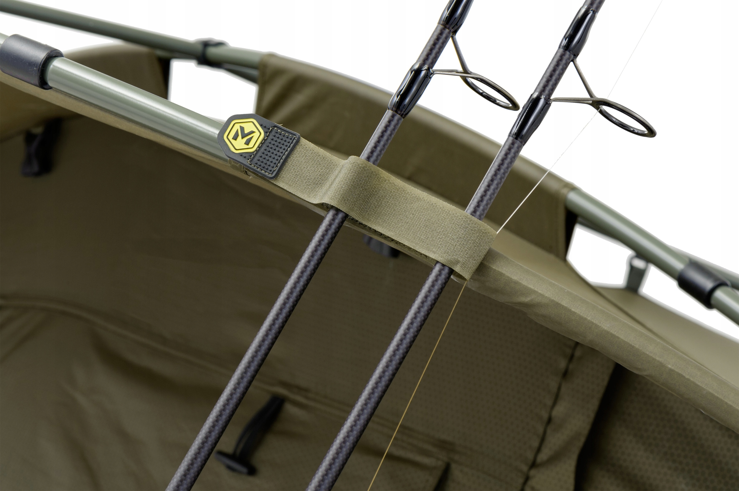 Палатка оснащена полом, который крепится на молнии по всему периметру. Он чрезвычайно легкий и компактный для транспортировки. Чехол изготовлен из материала M-TEC300 с шестиугольной фактурой, обеспечивающей водонепроницаемость 8000 мм. Телескопические натяжные балки оснащены новыми замками Mivardi с высоким прижимным усилием, обеспечивающими идеальное натяжение покрытия. Важной особенностью конструкции является набор уникальных самоблокирующихся боковых натяжных балок. Их установка действительно быстрая и простая. После закрепления эти перекладины плотно зажимаются обоими ребрами, что значительно увеличивает общую жесткость и устойчивость палатки. В качестве практичного аксессуара можно приобрести отдельно многофункциональный держатель для удочек и рыболовные сети. Этот держатель можно прикрепить к боковой натяжной балке.