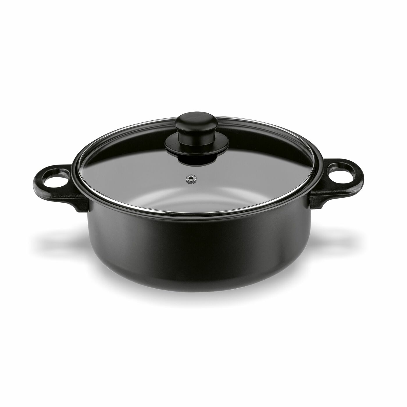 Диаметр кастрюли 24 см, вместимость 3 литра. Стеклянная и прозрачная крышка позволяют следить за процессом приготовления или жарки.