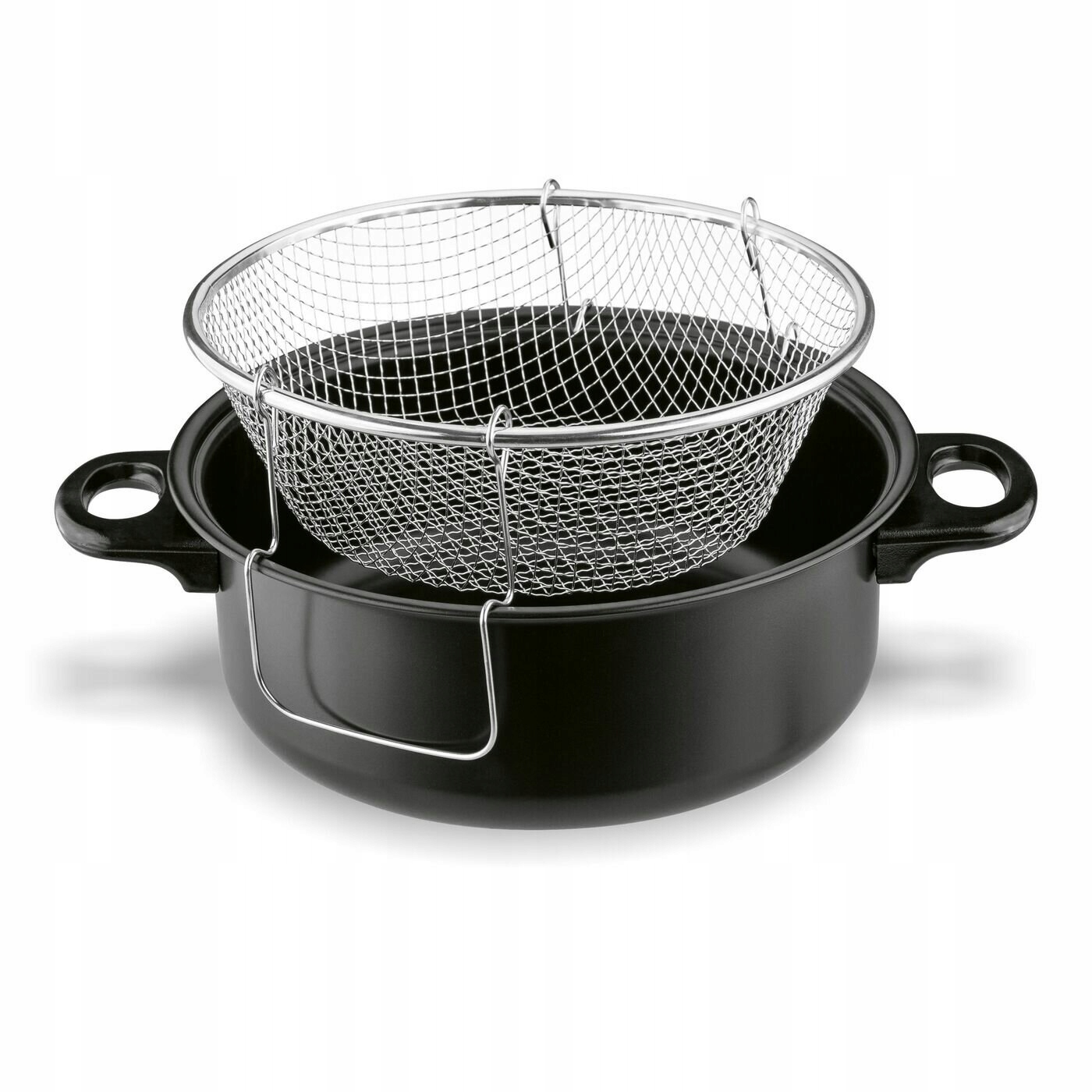 Конструкция кастрюли позволяет удобно жарить во фритюре. Вы можете в любой момент прервать процесс и вынуть ингредиенты из кастрюли благодаря практичной корзине. Вы можете легко слить воду с жареного мяса, картофеля фри, луковых колец или мини-пончиков.
