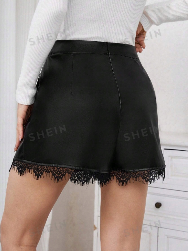 SHEIN ЧЕРНЫЕ КРУЖЕВНЫЕ ШОРТЫ ИЗ ЭКО-КОЖИ 44 LAJ