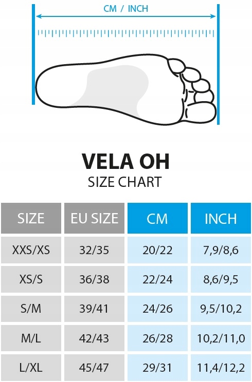 Seac Vela OH Fins поставляются в 3 цветовых вариантах: черный, белый и синий. Возраст и появляется в 5 размерах: