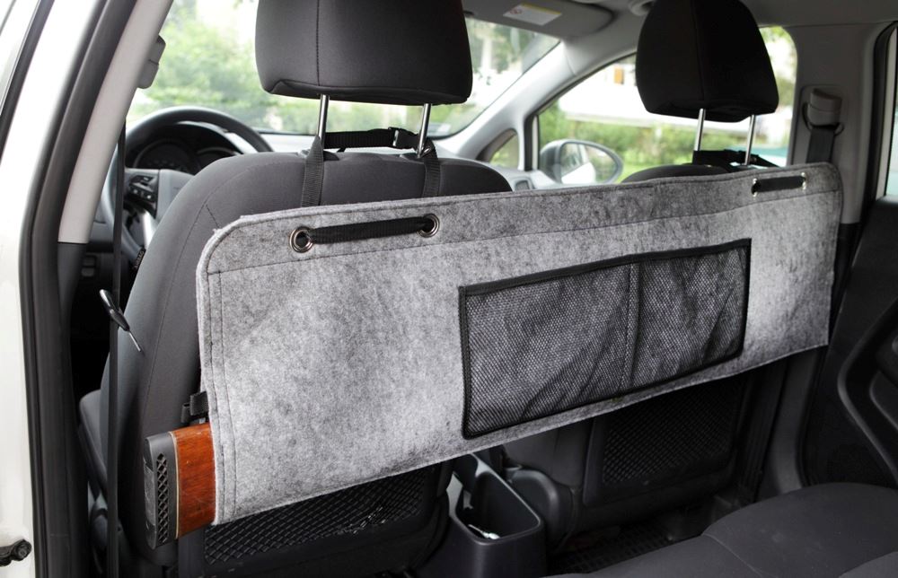 Car Case, сделанный из толстого ощущения, хорошо защищающего оружия от ссадинов и ударов. Он имеет карман шириной 30 см, который позволяет вам вставлять оружие вместе с оптикой. Дополнительный сетчатый карман для транспортировки охотничьих аксессуаров. Стороны корпуса, прикрепленные липучкой с ручками, которые облегчают открытие. Быстрая и легкая сборка на пленке с кликами для подголовника передних сидений.