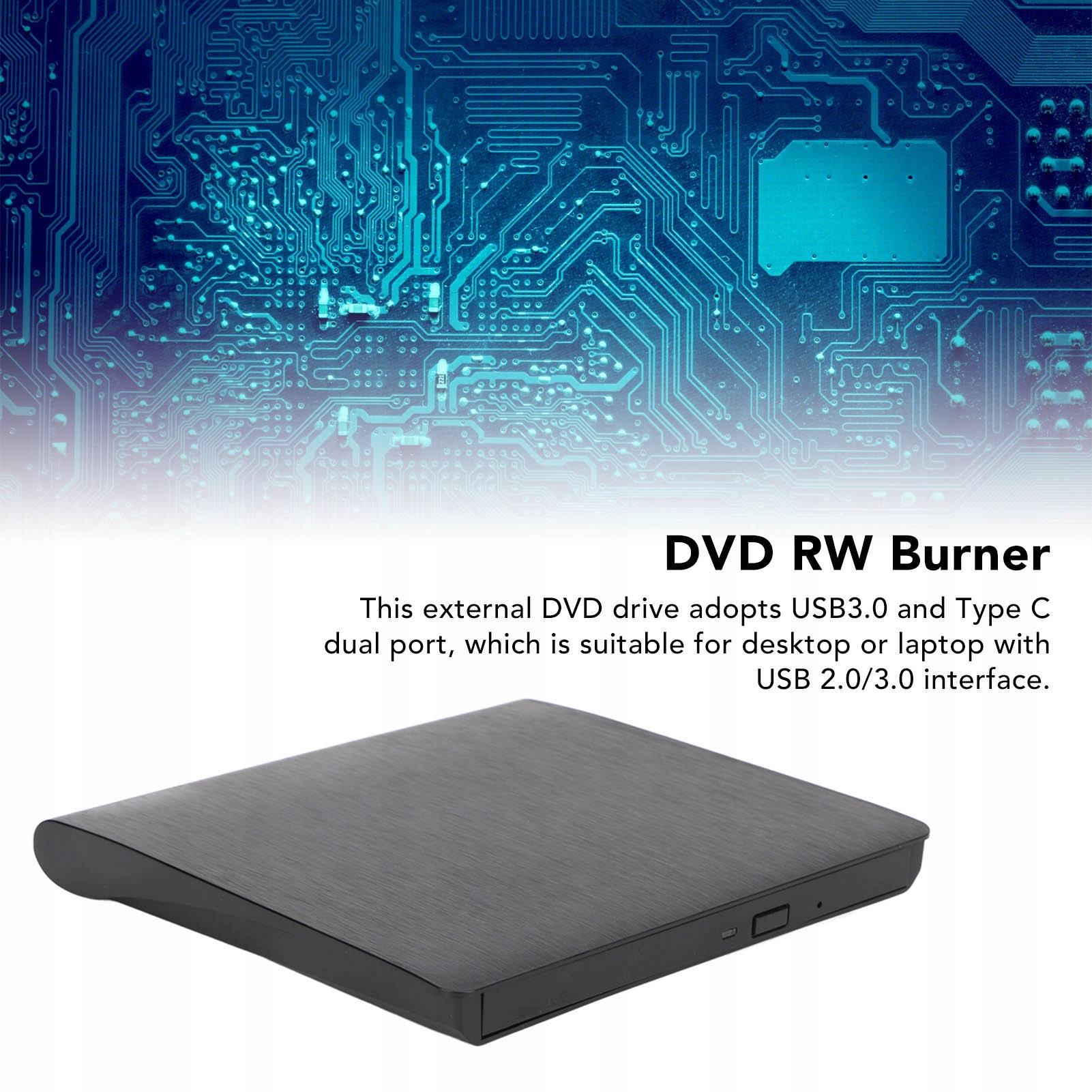 1. Двойной порт: этот внешний DVD-привод оснащен двойным портом USB 3.0 и портом типа C, который подходит для настольных компьютеров или ноутбуков с интерфейсом USB 2.0/3.0.