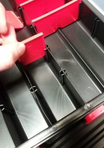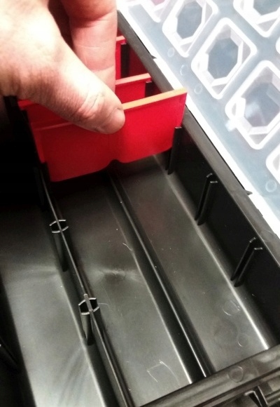 Каждый органайзер состоит из четырех фиксированных отделений, две самые большие из которых можно свободно разделить на отсеки. Мы получим максимум 14 камер.