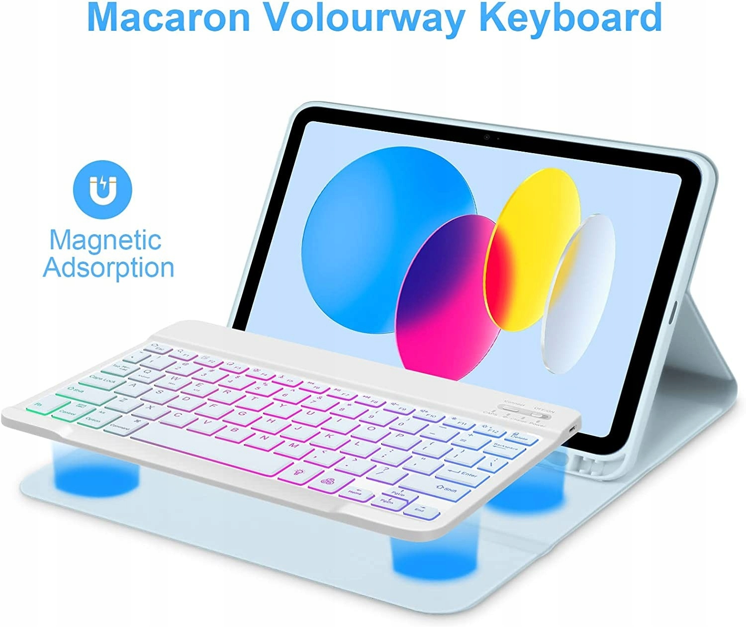Съемный освещенный блюэтут клавиатура: освещенные цвета с 3 уровнями яркости делают написание приятным и легким в темных или легких ситуациях. Клавиатура IPAD 10 -го поколения может быть магнитно прикреплена к корпусу и удалена, если не нужно. Комбинация Bluetooth проста.